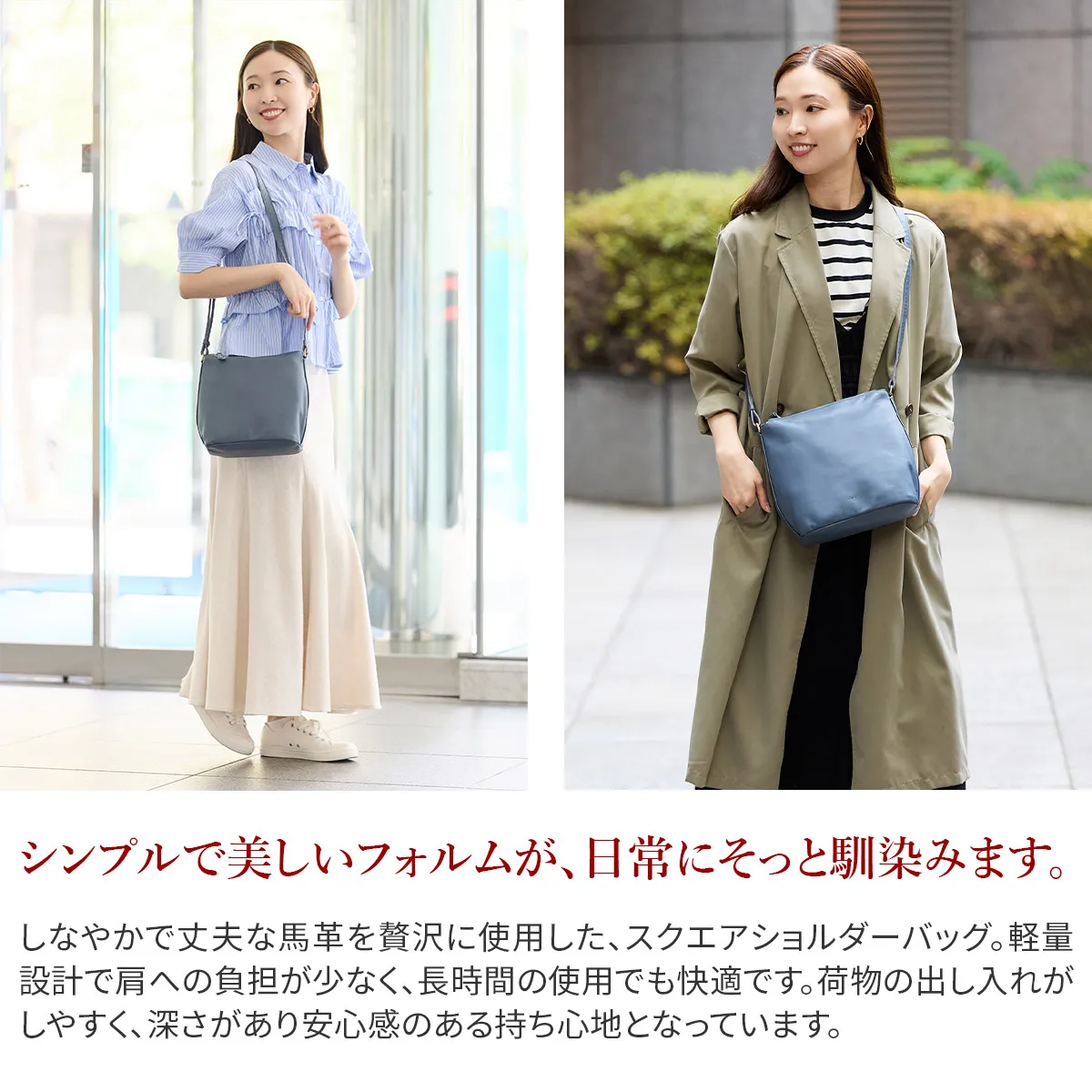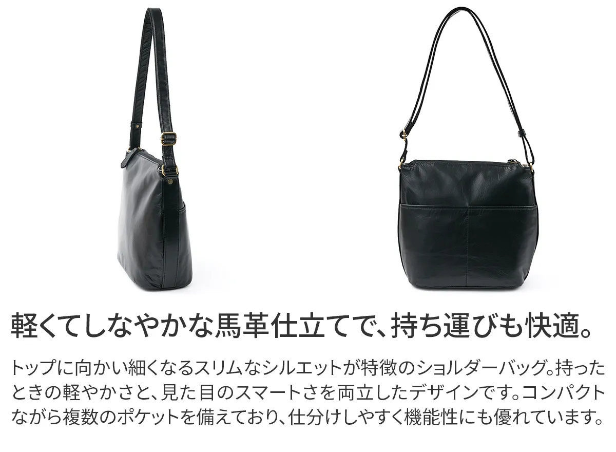 発色の良いさらりとした表情と軽さが魅力の馬革を使用したシリーズ。シンプルなデザインでスタイルを選ばす傷や水にも比較的強く仕上がっているので普段使いからお仕事までデイリーユースにおすすめです。 無駄を削ぎ落とした、飽きのこないミニマルデザイン。さらっと軽く、しなやかな馬革仕立てで、毎日の持ち歩きも快適です。小ぶりながら、複数のポケットを備えた実用的な構造。使うほどに深まる革の味わいが、日々のスタイルに馴染んでいきます。