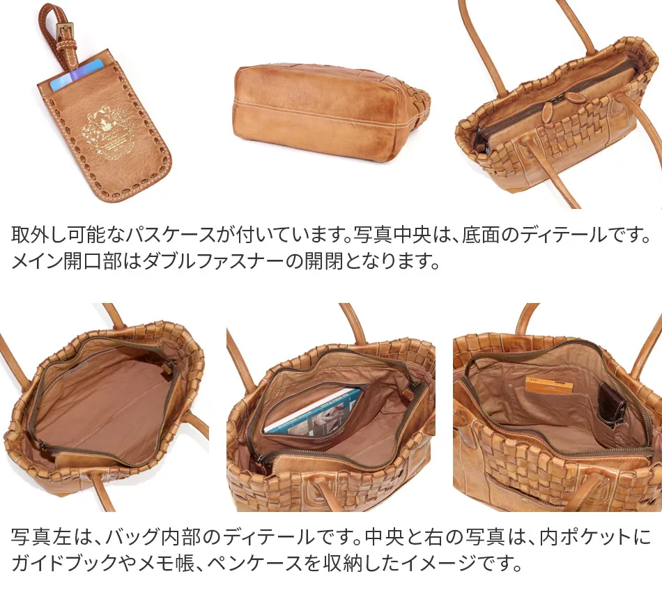 使い込んだかの様に、バフ加工を施したバッグ。 職人さんが1本1本手をかけていくので仕上がり感も1本ごとに異なります。 ~アーロシリーズ~ ≪素材の特性≫ 縫製後に染色をする『後染め加工』を行い、その後、1本1本オイルを加えながらバフ加工を施した商品の為、色の濃淡など個体差が生じます。 また、裏地には後染め加工時に染料だまり(色が濃くなる)箇所が生じる場合もございます。 1本1本風合いが異なるナチュラル感をお楽しみ頂けます。 バッグには取り外しが可能なパスケースが付属しています。 A4サイズが収納できる大きさなのでプライベートや仕事のオンオフに活躍しそうですね。