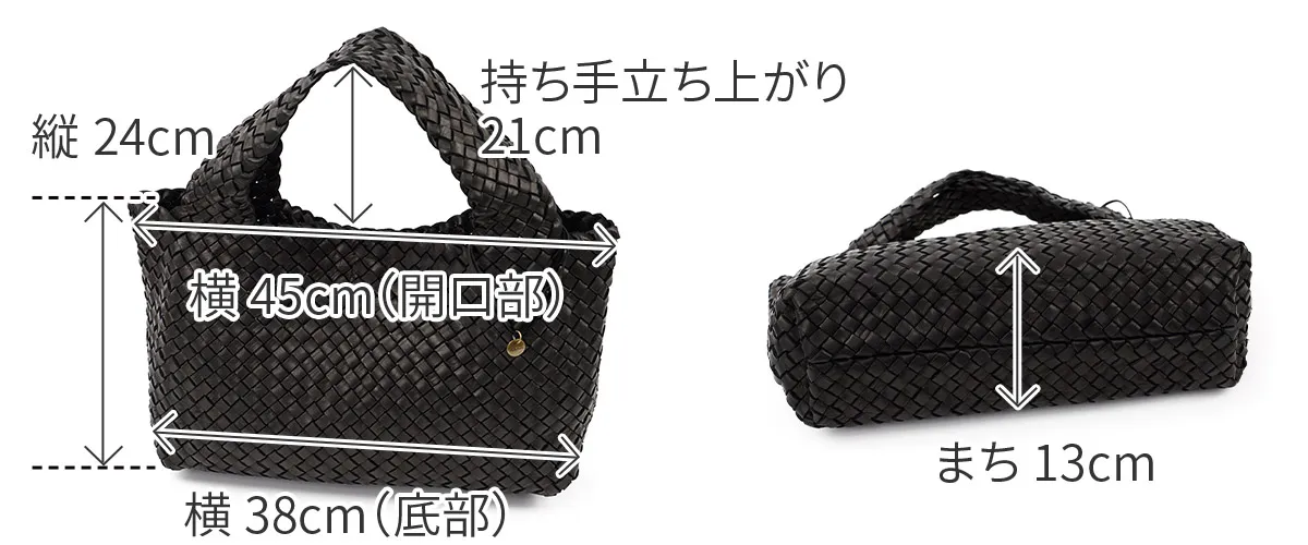 外寸 縦24cm×横45cm(開口部)、38cm(底部)×まち13cm