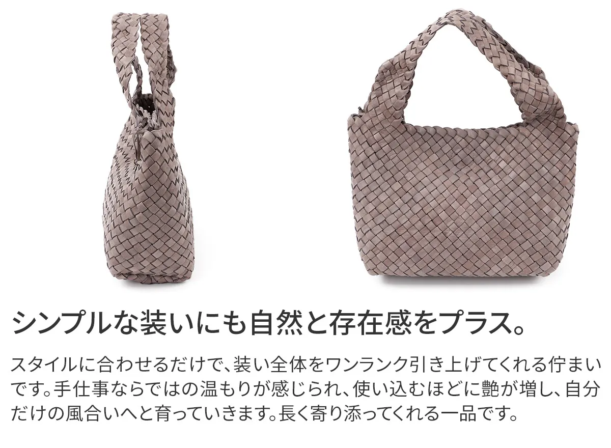 日本を代表する革の産地である姫路の馬革をたっぷりと使用しました。革本来の風合いが感じられる染料仕上げの革を持ち手まで編み上げることで馬革の滑らかな手触りを堪能できる贅沢なシリーズです。 熟練された職人により丁寧に編み込まれたメッシュバッグです。裏地やポケットのないシンプルなデザインで、馬革本来の奥行きのある表情をより堪能できます。開口部はマグネットタイプを採用し、中身へアクセスしやすいのも嬉しいポイント◎。