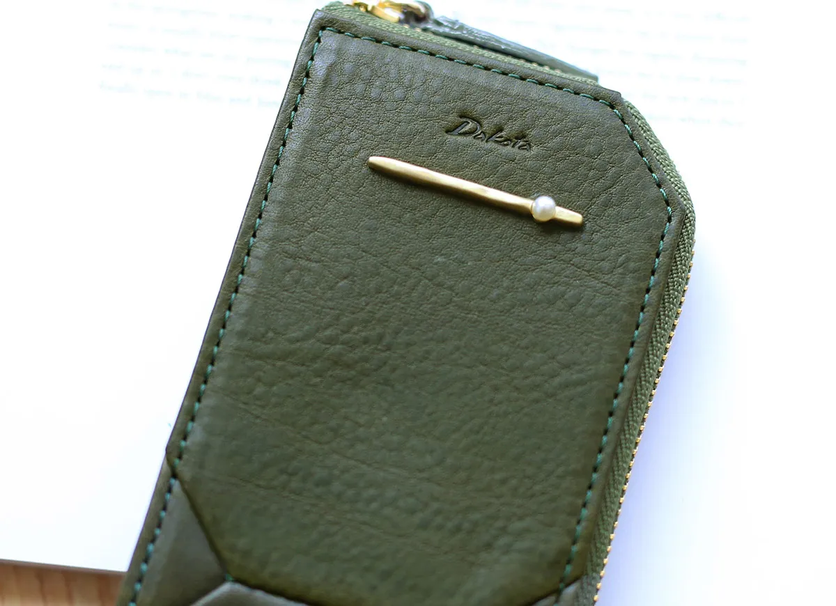 植物タンニン鞣しのイタリアンレザーにパールブローチをあしらいました。 ナチュラルな革の雰囲気に一粒のパールが良く映え、素朴さと清潔感を感じさせます。 エイジングの増すレザーにクラフト調のブローチが相まって、使う程にアンティークの様な趣を感じさせます。 鍵とカードが一緒に収納できるので、貴重品がまとまり身軽に行動できます。 窓付きのポケットにはすぐに取り出したいICカードやクレジットカードを収納していただくのに便利です。 1つ1つ異なるシボの表情が美しく、経年変化を楽しみながらお使いいただけます。
