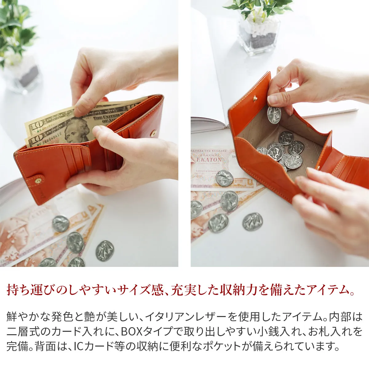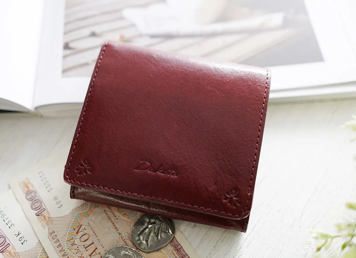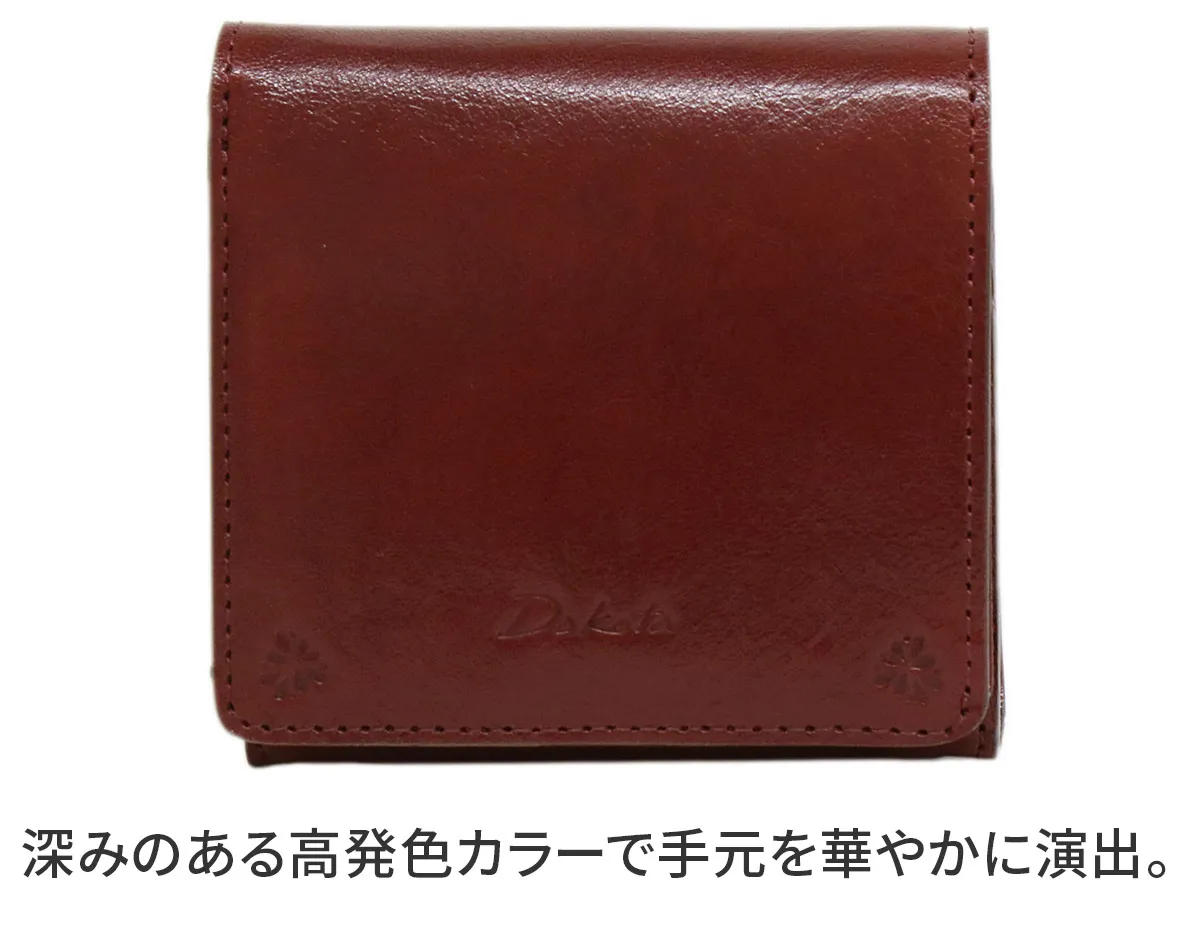 旅行やパーティーシーンなどにも便利な、小さなお財布です。艶やかなイタリアンレザーを使用。ワンポイントの花の型押しがとても愛らしいシリーズです。 艶のある、発色の良いイタリアンレザーが上品な印象的のウォレット。軽く、コンパクトに収納ができるので、バッグに入れてもかさばらず持ち運べます。フラップにさり気なく施されたお花の型押しがポイントです。