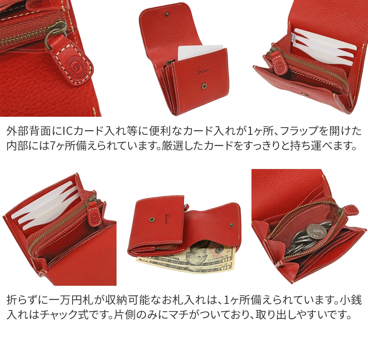 イタリア・トスカーナ州にある老舗タンナーで、じっくりと丁寧に作られたフルベジタブルタンニン鞣しの牛革を使用しています。イタリアンレザーの香りや手触り、日々使うことで馴染んでいく経年変化をより楽しんで頂けるよう、生地は使用せず中作りまで贅沢に革で仕立てました。 フラップのロゴが特徴的な二つ折りウォレット。カード入れやポケット、貨幣入れを完備しています。チャック式の小銭入れによりできた仕切り2ヶ所にカードや領収書等も収納が可能。使う程に飴色に変化するイタリアンレザー。しなやかな質感で使い始めから快適にご使用できます。