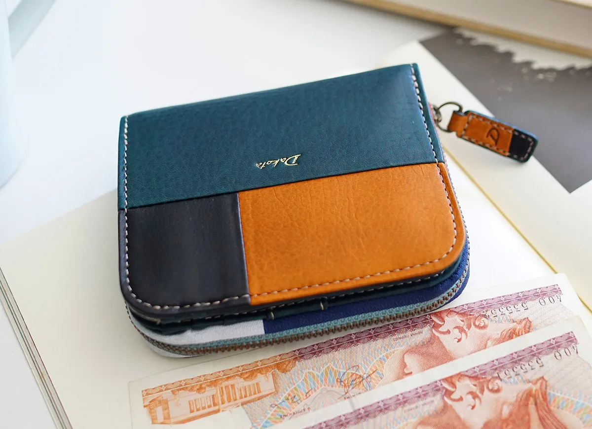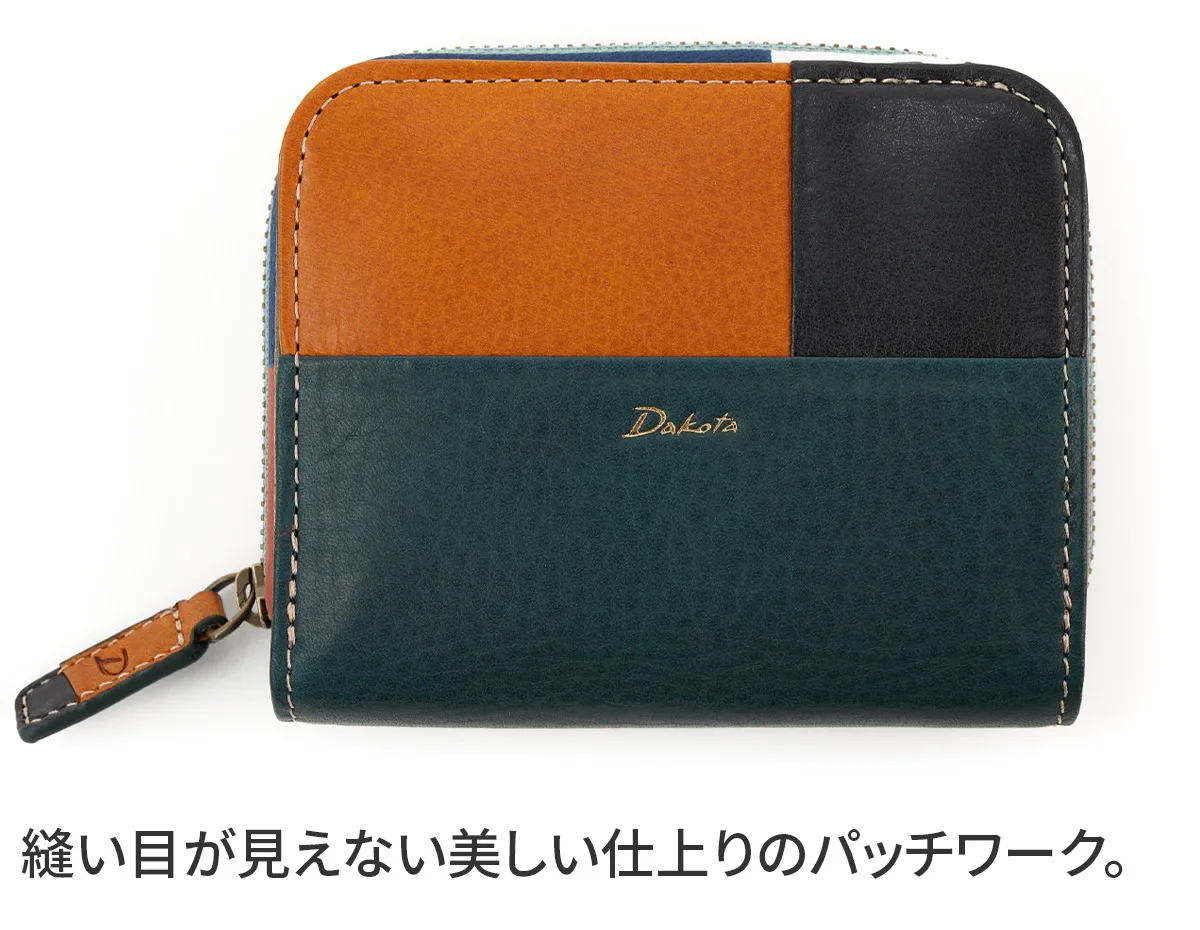 「色遊び」がテーマです。シームレスなパッチワークに加えファスナーテープにもシルクプリントを施した新鮮かつモダンな印象のお財布。自然のモチーフや風景から色の組み合わせをイメージしたので、カラフルでありながらどこか落ち着いた大人っぽい仕上がりになっています。 落ち着きのあるマルチカラーがモダンな雰囲気を漂わせます。ボタンを開くと見開きになり、カードが確認しやすくなっています。カード入れは片側が二層式で、必要なカードをしっかり収納できます。