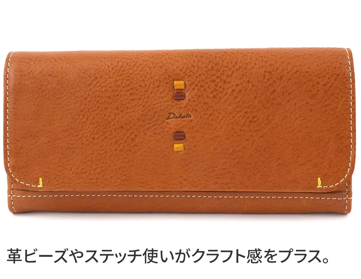 長くお使いいただけるよう、愛でて頂けるようエイジングが魅力のイタリアンレザーに革で出来た小さなビーズがあしらわれています。クラフトマンシップと上質感を感じさせるアクセントとして効いています。使うほどに丸みを帯びる革ビーズ、艶と深みが増す革色。一時的な時流に流されることなく、お使いいただける方の日常に溶け込み成長してゆきます。 大きなフラップに革ビーズとステッチがアクセントになった、クラフト感溢れるロングウォレットです。外側にはオープンポケットが1ヶ所備えられています。その中にはカード入れも備えられているので、クレジットカードやポイントカードなどが収納できる嬉しい仕様となっています。