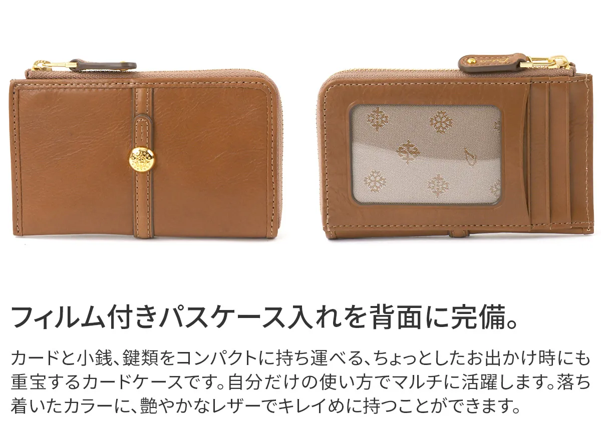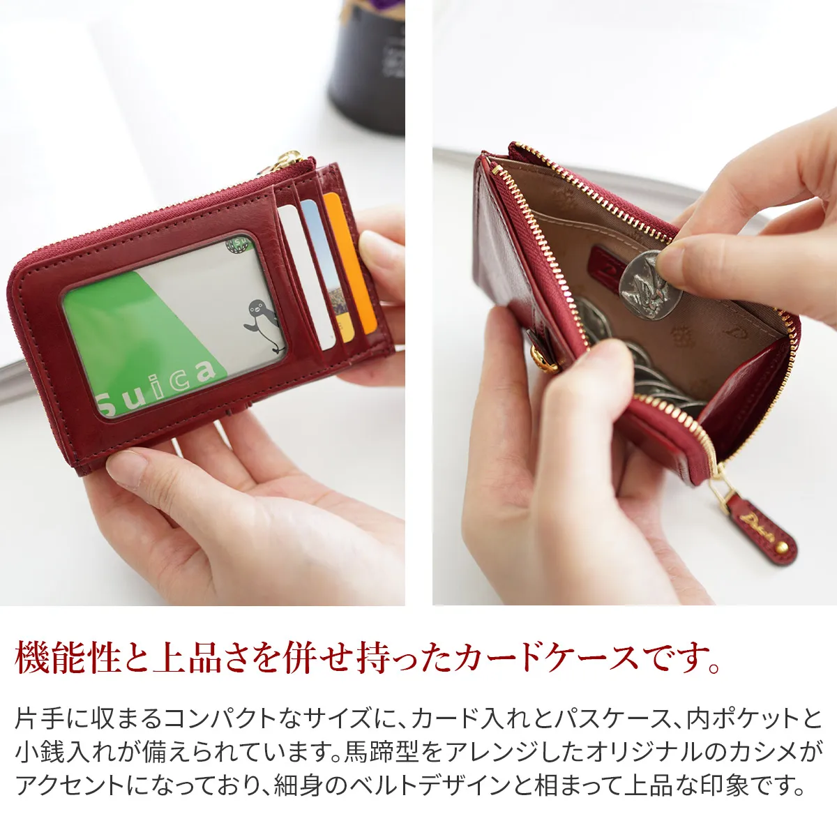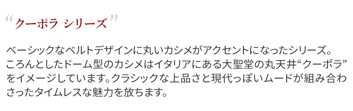 ベーシックなベルトデザインに丸いカシメがアクセントになったシリーズ。ころんとしたドーム型のカシメはイタリアにある大聖堂の丸天井”クーポラ”をイメージしています。クラシックな上品さと現代っぽいムードが組み合わさったタイムレスな魅力を放ちます。 カードケースに小銭入れが備えられた、ちょっとしたお出かけに重宝する便利なアイテムです。バッグやポケットにサッと仕舞える薄型フォルムで、気軽に持ち運びができます。