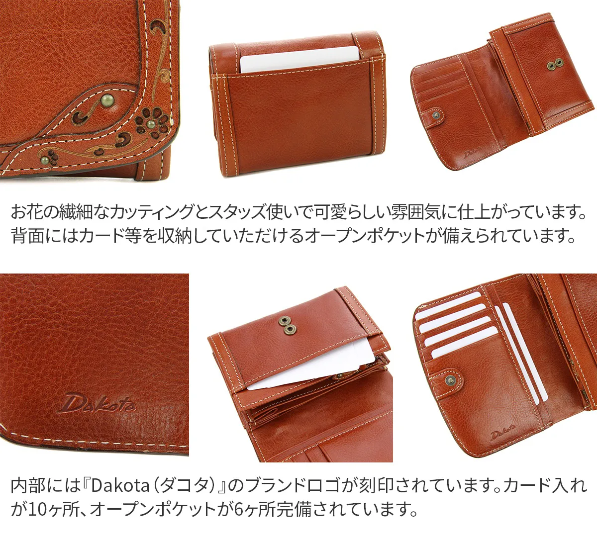 Dakota(ダコタ) デイジー 小銭入れ付き二つ折り財布 0035221 0034221 ジャバラタイプで使いやすい お花モチーフの2つ折りウォレット