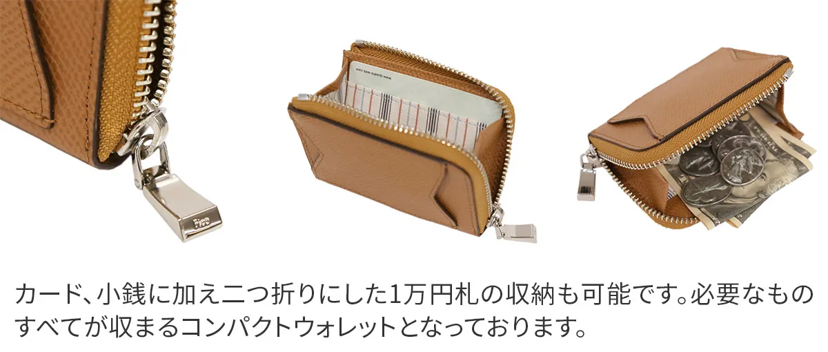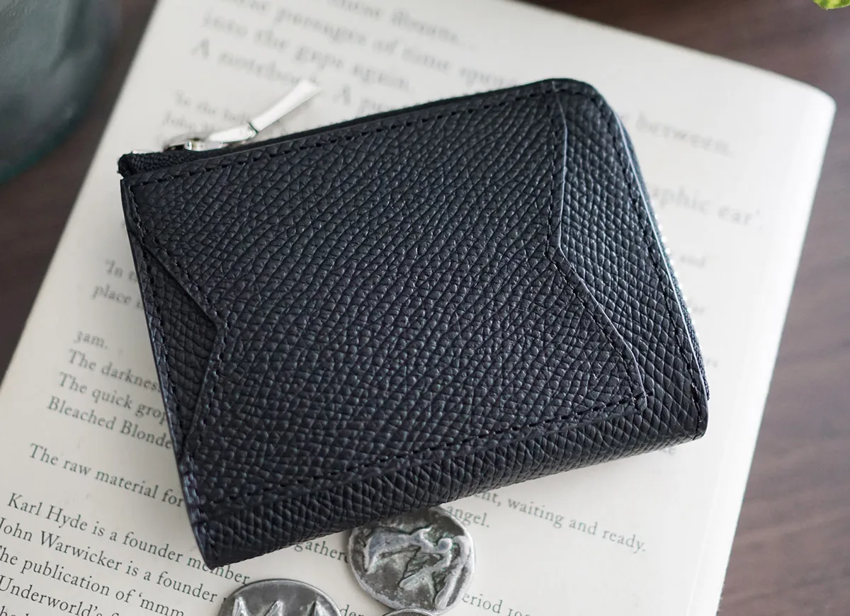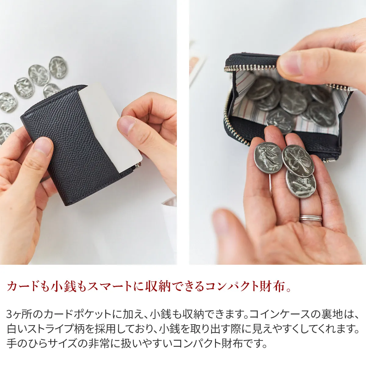 オーセンティックな佇まいにリラックス感とカジュアル感をプラスしたシリーズ。 “手のひらサイズ”をキーワードに、コンパクトなレザーグッズを展開。 ドイツ車のカーシートにも使用されている牛革原皮を使用。 職人がパテで下地の表面を均一にならしていく。顔料で色付け後、型を押す。 型の頭をプリンティングマシーンを用いて染料で頭貼りを行う。また頭貼りをしない黒、ネイビー等の濃色は染料をスプレー吹きし透明感を出しています。 手に馴染むしなやかさと ラフに使っても気にならない堅牢さを持ち合わせています。 手のひらサイズのコンパクトウォレット。 カード、小銭、二つ折りにした1万円札をまとめて収納でき、裏地のストライプ柄のデザインが目を惹く逸品です。