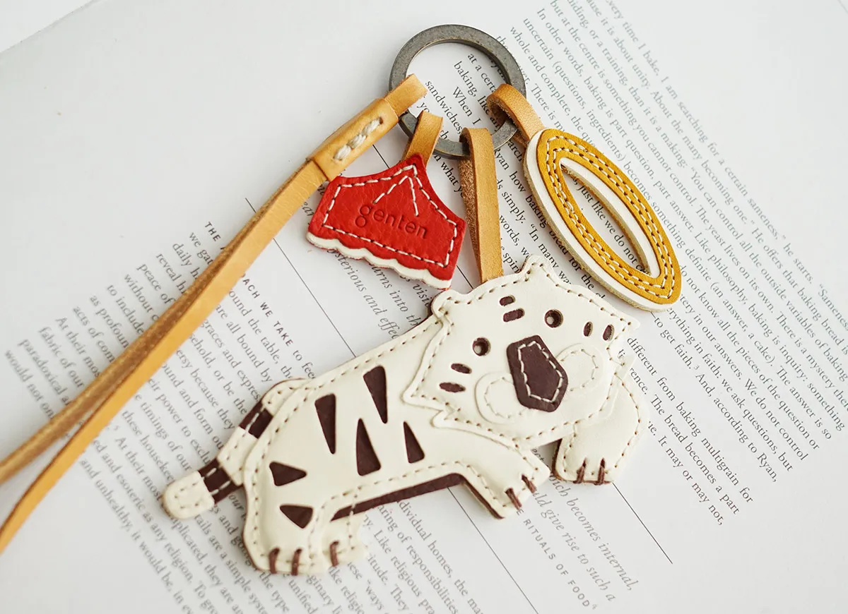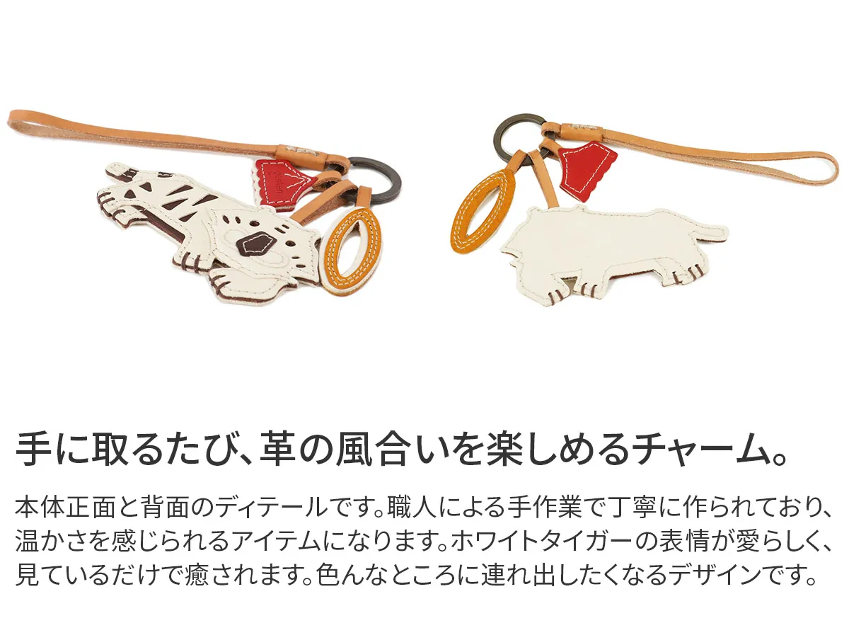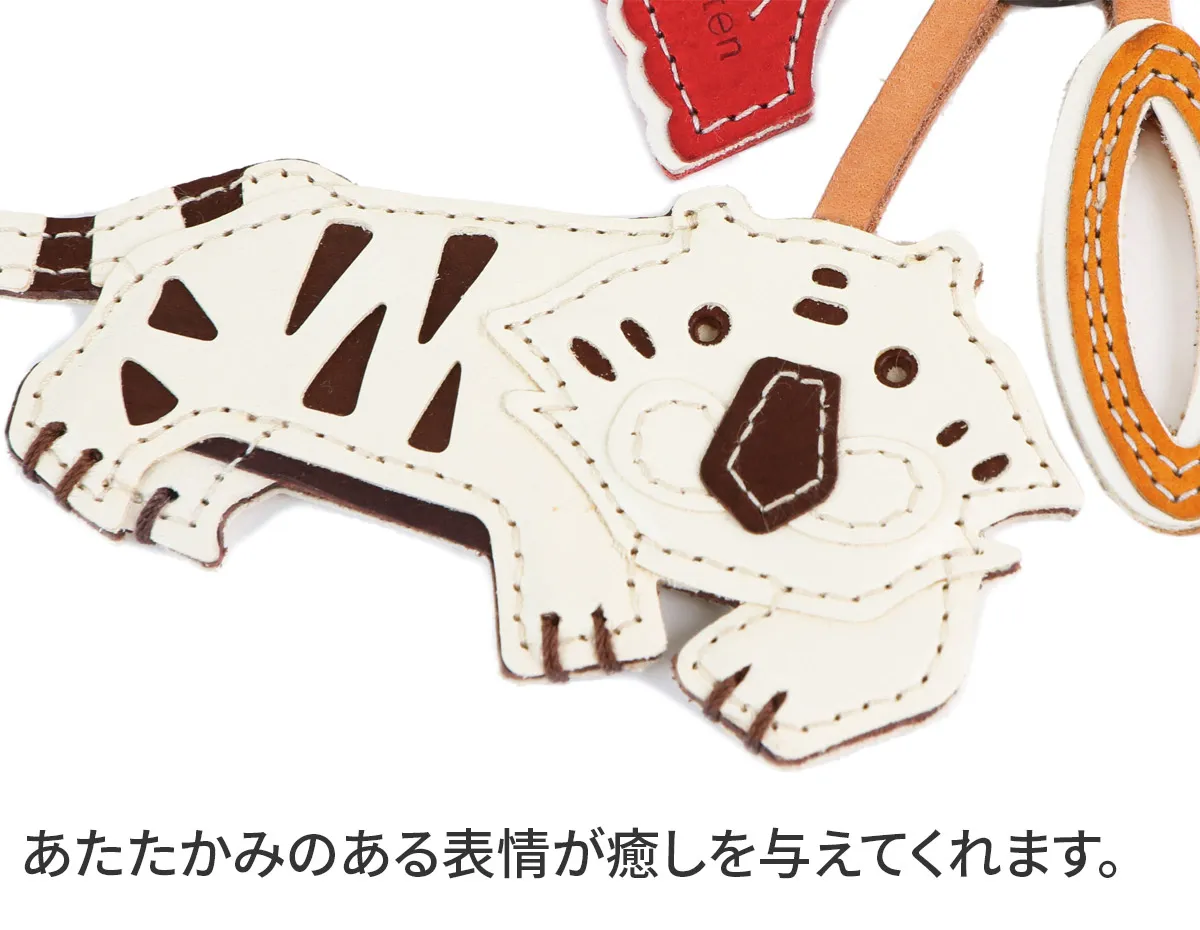 ほっこり癒されるアクセントに。 ホワイトタイガーのレザーチャーム。