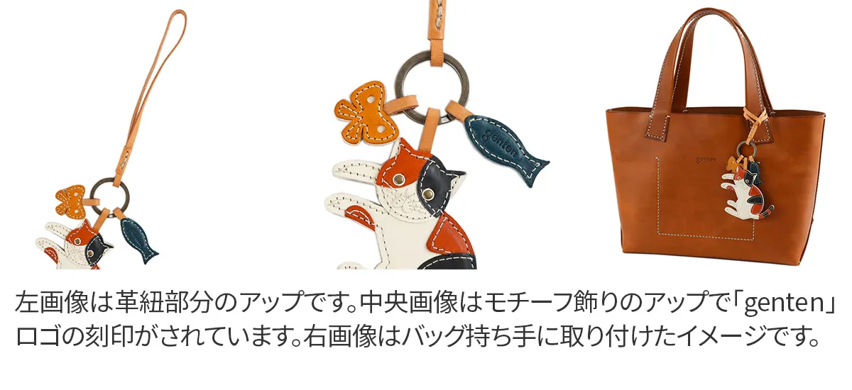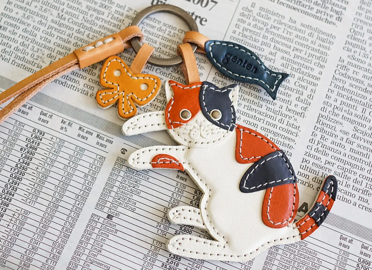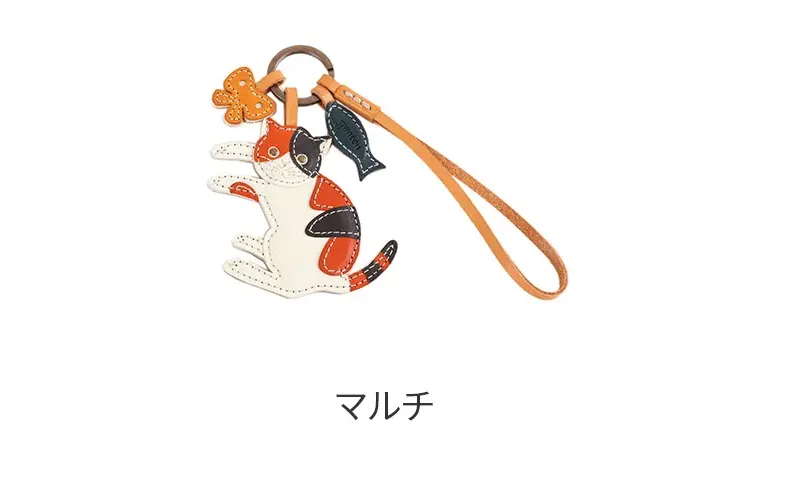 動物や食べ物をモチーフにしたレザーチャーム。 レザーの優しい風合いと綺麗な発色が楽しめます。 手触りの良い牛革を使用した、発色が魅力の逸品です。猫をモチーフにした可愛らしいデザインで、日常に癒しをプラスします。お使いいただく度に艶感が増し経年変化をお楽しみいただます。プレゼントにもおすすめのアイテムです。