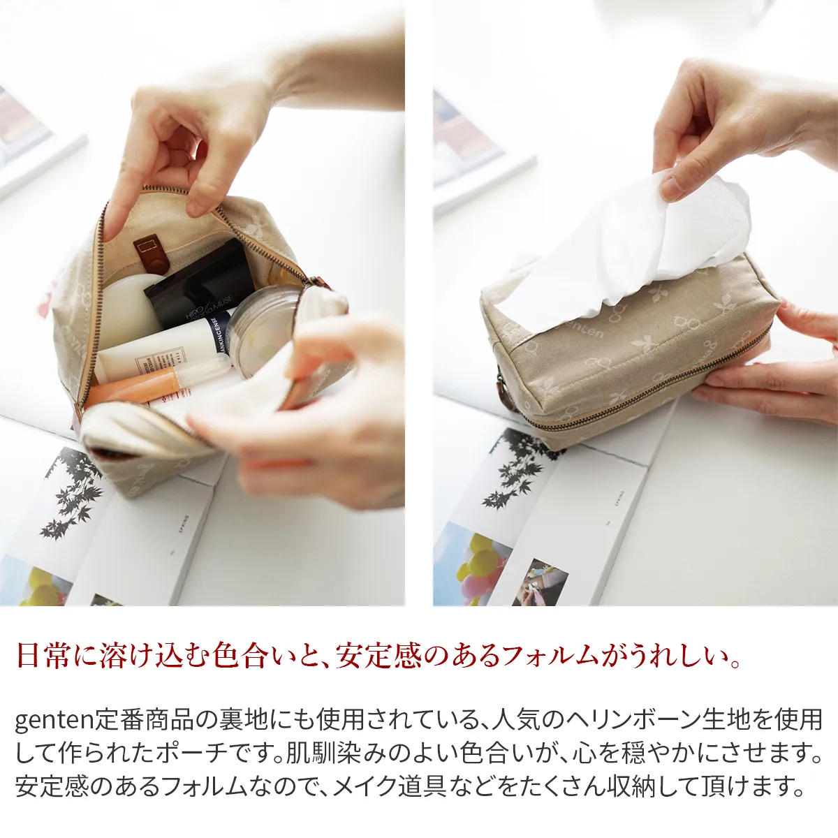 いつものメイクをもっと楽しく。 日常のひとコマに温もりを与えるポーチ。