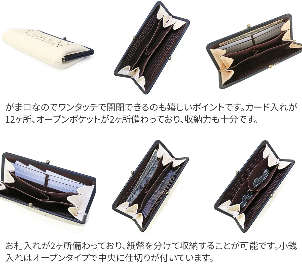 5. genten ゲンテン cut work カットワーク がま口長財布 49494(42192)