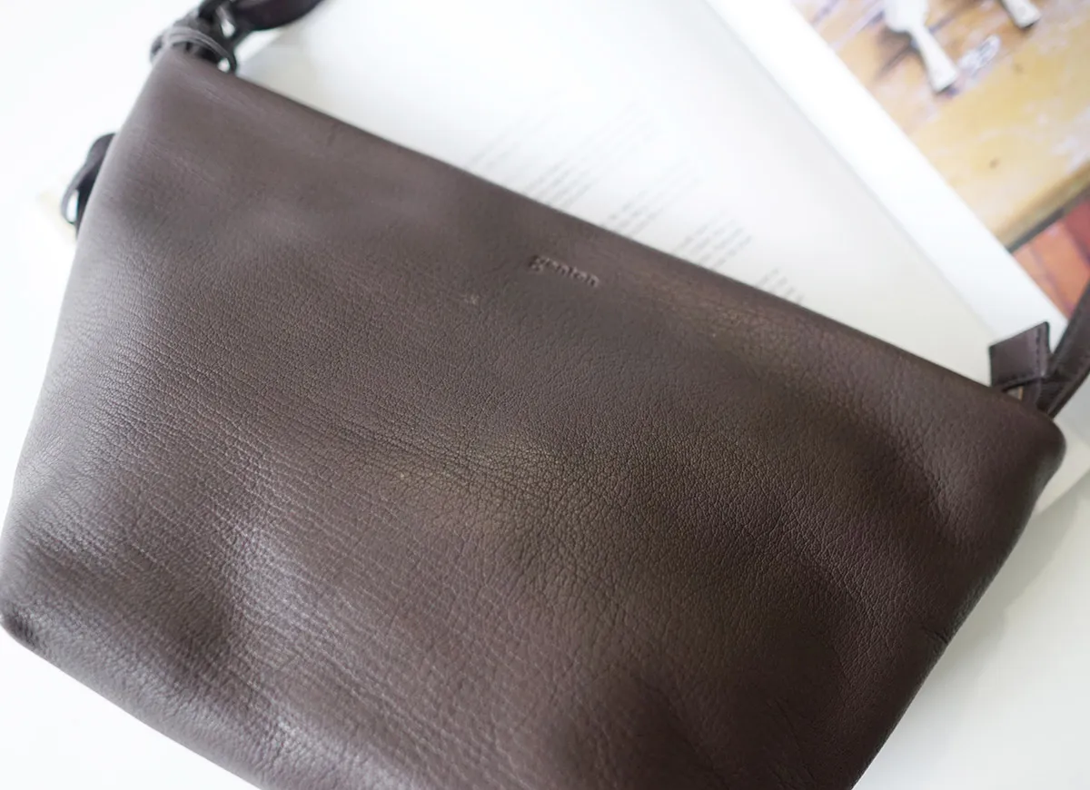 好評をいただいているゴートヌメをよりナチュラルな表情に仕上げた「ゴートベーシック」が登場です。 ゴートヌメは仕上げにウォッシュ加工をかけ、表面にバフ加工(焦がし)を入れることでヴィンテージ感を演出しておりましたが、 ゴートベーシックでは、製品後のバフ加工ではなく、革の段階でグレージングという仕上げ加工を加えています。 素上げの山羊革にグレージング加工を施す事で素材のそのものの持つ表情をより際立たせ、奥行き感のある仕上がりにしています。 軽く柔らかでしなやかさが特徴の素材を使用している為、身体に馴染みやすいのが嬉しい。無駄を省いたシンプルデザインだから、どんなコーデにも合わせやすいショルダーバッグ。お出かけやちょっとしたお買い物におすすめです。