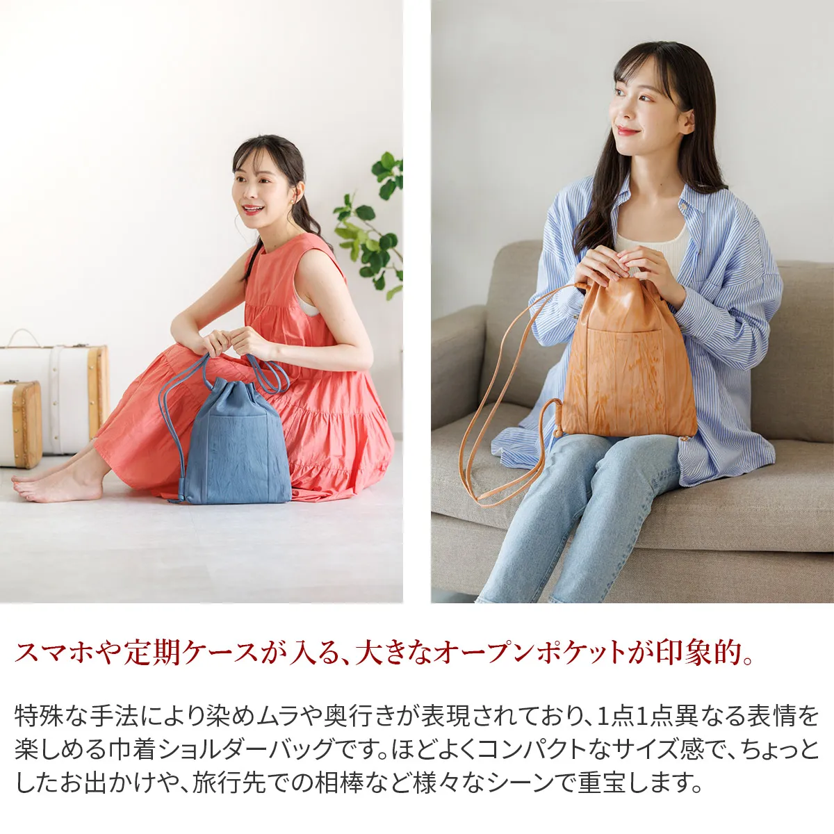 ※こちらの商品は自然な風合いを生かすため、色止め加工を最小限にとどめております。そのため摩擦、汗、水分を含んだ場合、多少色落ち、色移りする事もありますのでご注意下さい。