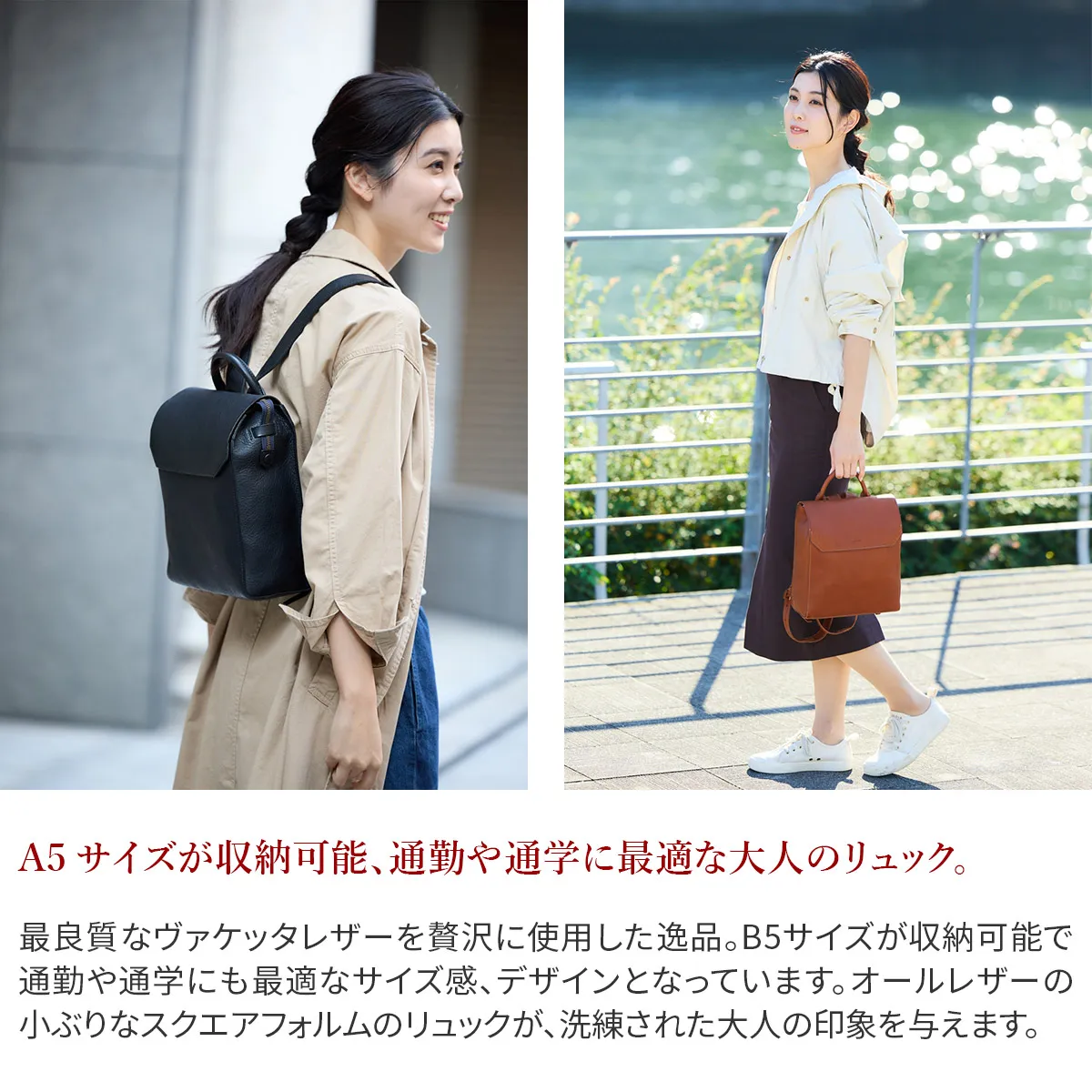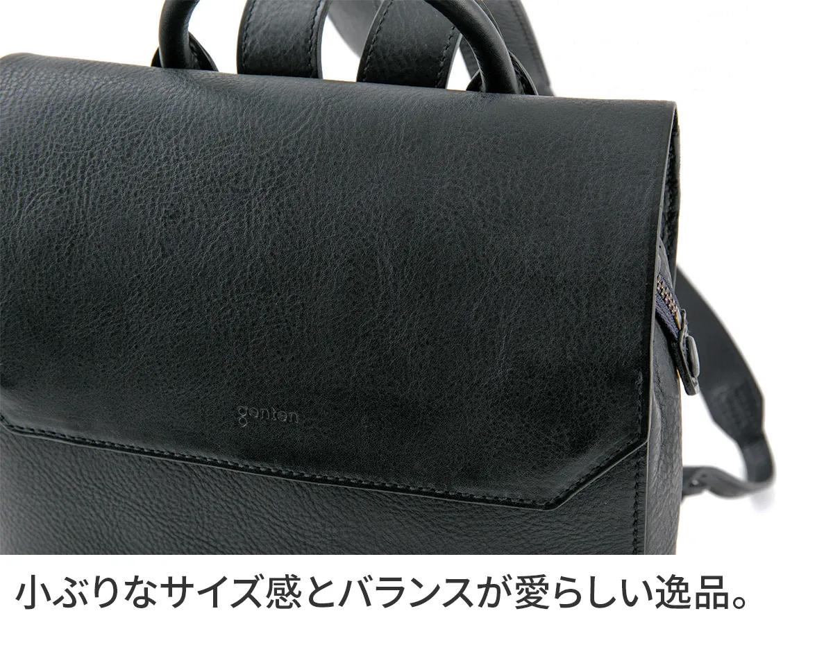 知恵や工芸などを司る、古代ローマの美神"ミネルヴァ MINERVA" ミニマムな中に漂う知的な佇まいと、数々の手仕事に裏打ちされた確かな品格。 その存在感に穏やかさと豊かさを際立たせてくれる、優良質なヴァケッタ革の魅力。 何かを足すのではなく、何も引くこともない、エターナルな思いを込めて造られたアイテムの数々は、手に取るたびに至高の風格を垣間見せてくれます。貴方の傍らで、ともに静かに響きあえる・・・そんな関係を築けるバッグです。 <素材の特性・メリット> gentenお馴染みのヴァケッタ革、ミネルバボックス(minerva box)をふんだんに使用しました。バッグ本体やポケットの仕様部分に、革一枚仕立ての構造を多くあしらい、切り目や革裏を、職人が一枚一枚丁寧に腑糊で磨きをかけました。時間をかけて鞣されたタンニン革だからこそ楽しめる一枚革の魅力とエイジングの極みを存分にお楽しみください。 B5サイズが収納可能なコンパクトなサイズ感が魅力的なレザーリュック。マグネット式フラップで内側のファスナーを閉めなくても安心してお使いいただけます。背面のファスナーから内部にアクセスが可能で、使い勝手の良い構造となっています。