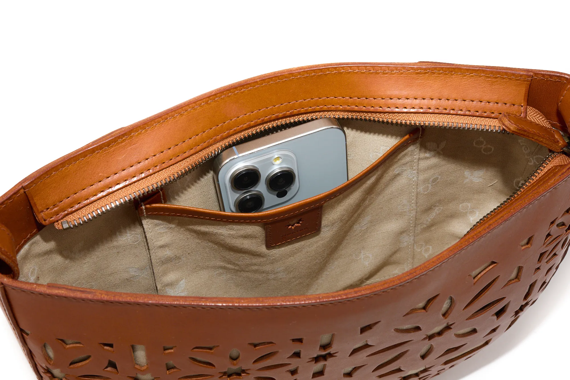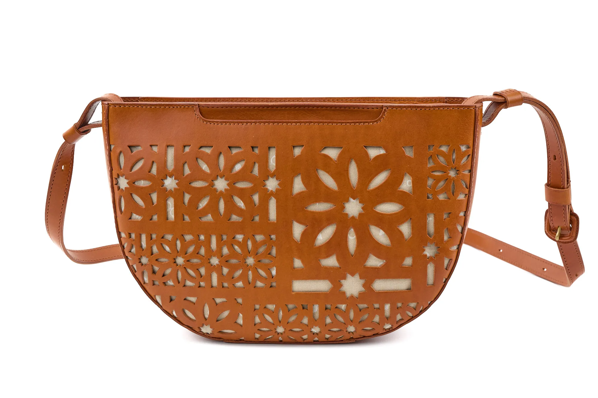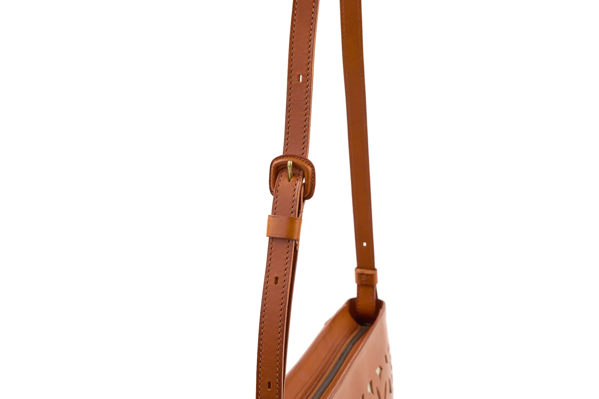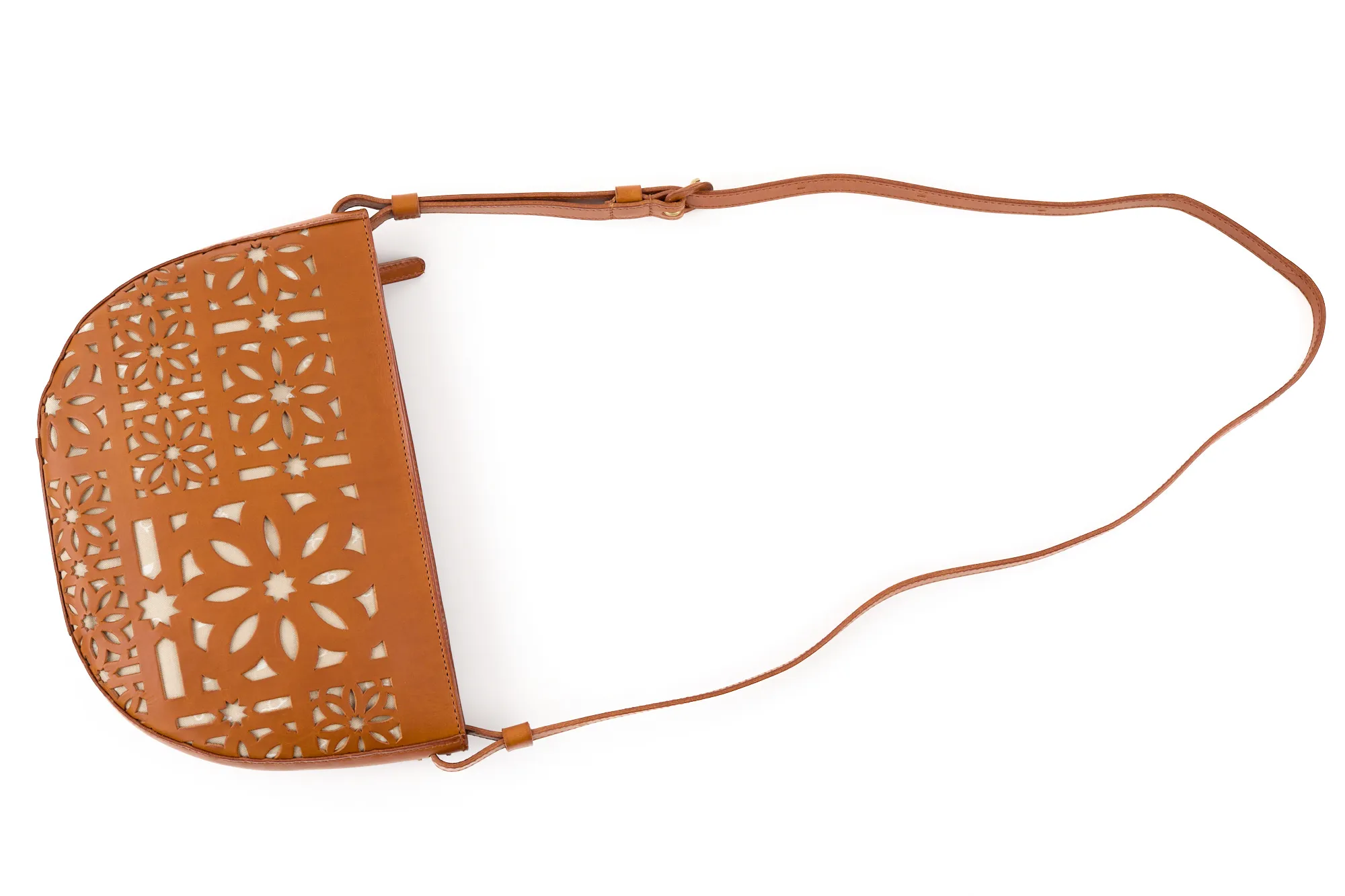 半月型の丸みを帯びたフォルムが愛らしく、カットワークがコーデを華やに彩ってくれます。 ショルダーベルトは長さを約70cm~123cmまで設けており、8段階調節が可能。 ワンショルダーから斜め掛けまで、コーデや身長に合わせお好きな持ち方ができます。 開口部は利便性を考えたファスナー仕様で、スムーズな開閉ができます。 マチが薄いので体への当たりが少なく、お出かけに丁度いいサイズ感のアイテムです。