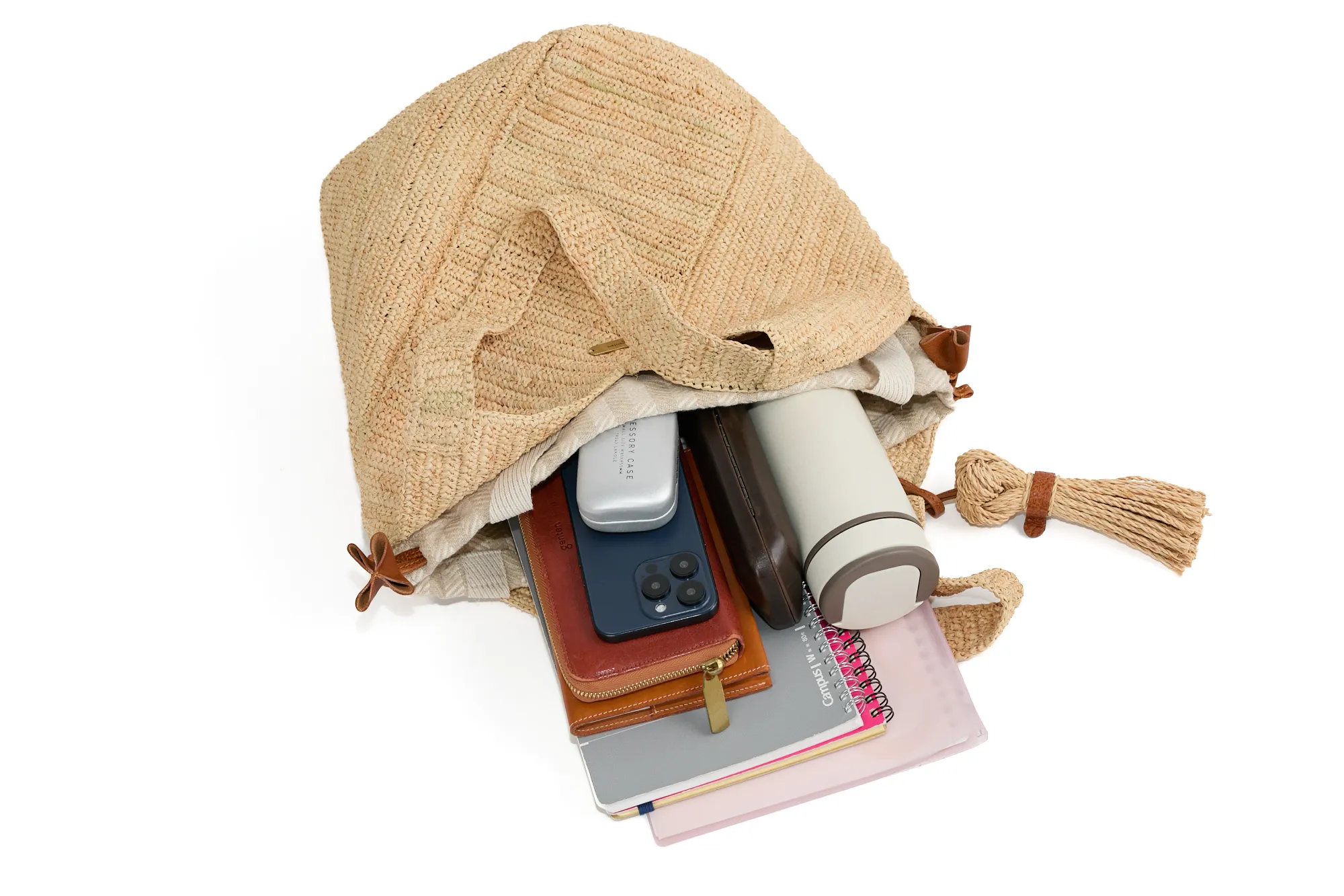 表素材 ラフィア+牛革+綿麻(内巾着)