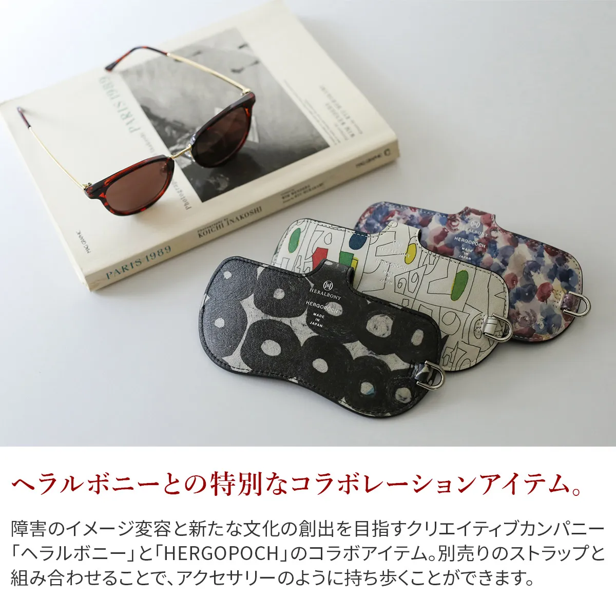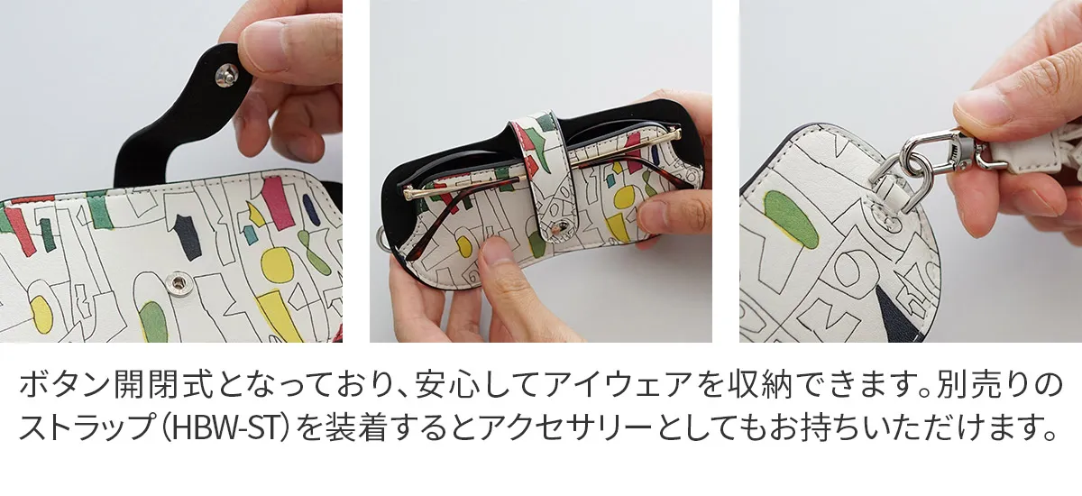 ヘラルボニーとの特別なコラボレーションによるメガネケース。 「見せる」ことを楽しむ新しいスタイルのケースは、別売りのストラップと組み合わせることで、まるでアクセサリーのように持ち歩くことができます。 シンプルなデザインは、どんなコーディネートにも自然に馴染み、さりげなくアートを日常に取り入れることが可能に。 ※全てのメガネに対応する製品ではありません。 極端に大きいメガネや、コンパクトで薄いメガネには使用できない場合があります。 デザイン性のあるミニマムなメガネケース。 内側はソフトな起毛素材を使用しており、安心して収納できます。 贈り物にもおすすめです。 ※メガネケース本体のみの販売です。