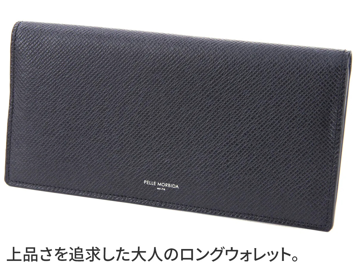 PELLE MORBIDA(ペッレ モルビダ) Barca バルカ エンボスレザー (オーヴァーロード) 小銭入れ付き 二つ折り長財布 PMO-BA310 スリムで使いやすく美しいフォルム、ミニマルな長財布。