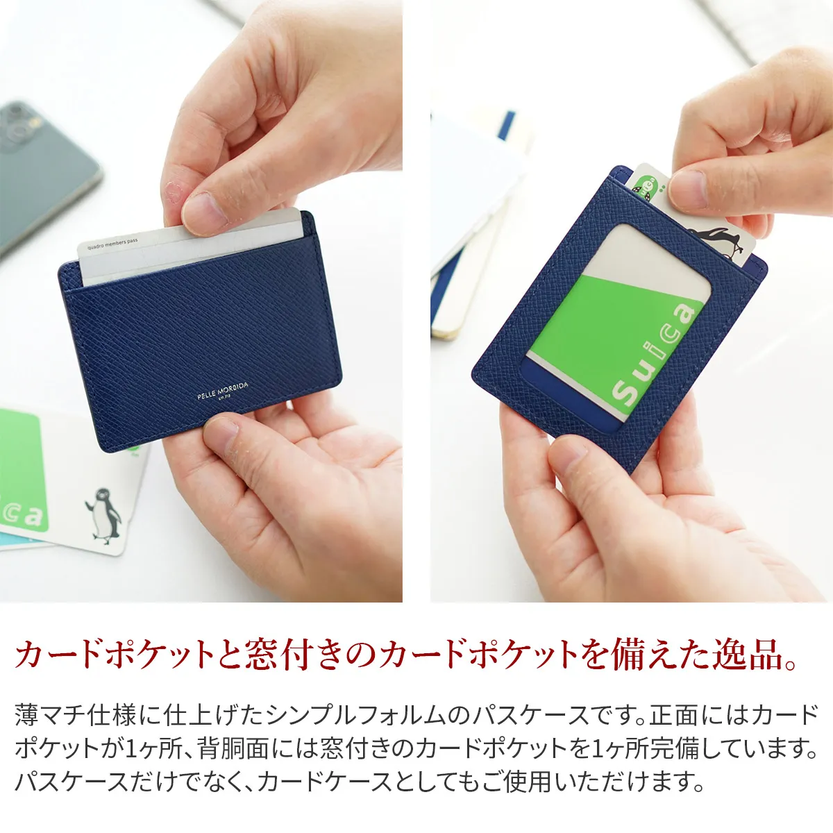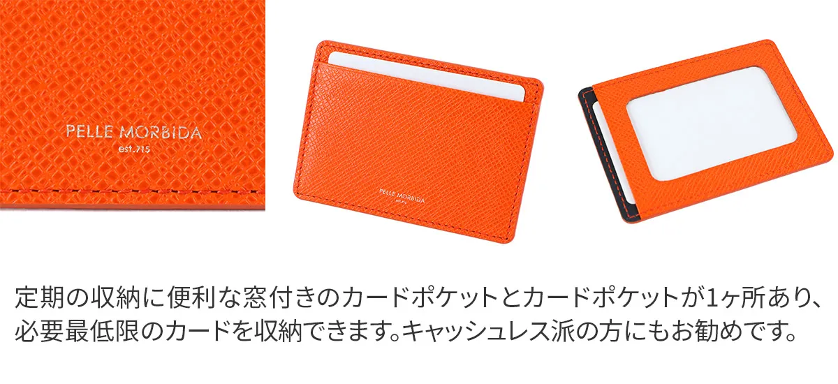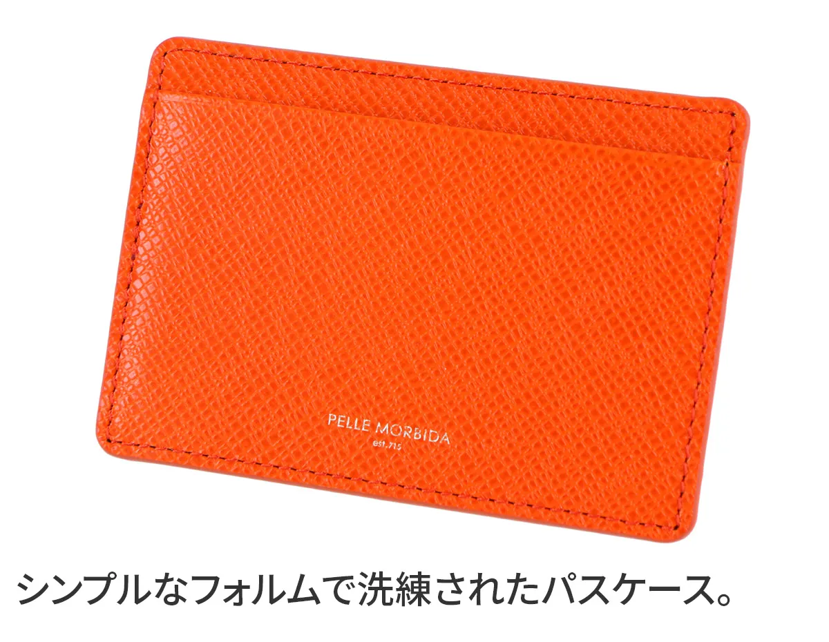 PELLE MORBIDA(ペッレ モルビダ) Barca バルカ エンボスレザー (オーヴァーロード) パスケース PMO-BA331 ポケットに収まるスマートさ。 ICカードの収納に便利なパスケース。