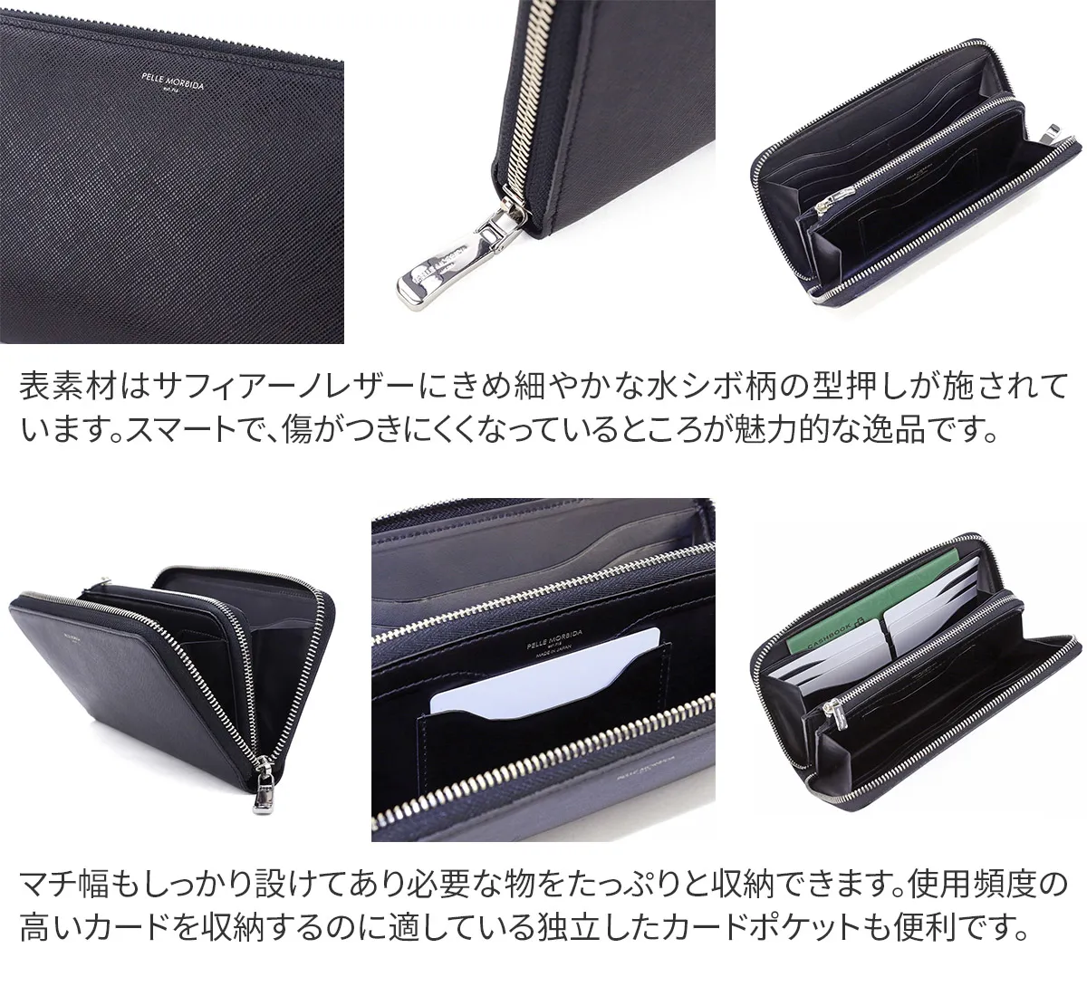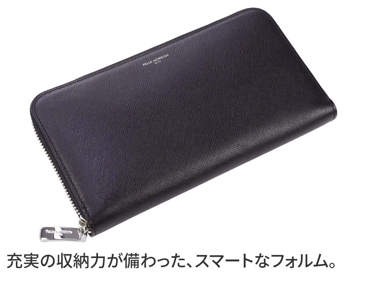 PELLE MORBIDA(ペッレ モルビダ) Barca バルカ エンボスレザー ラウンドファスナー 小銭入れ付き 長財布 (中) PMO-BA511 使い心地の良いサイズ感、大人のラウンドファスナー長財布。