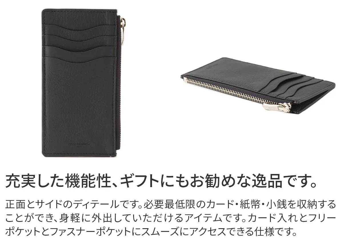 REMY CARRIAT(レミー キャリアット)社は、1927年に創業されたフランス、スペインの国境近くのエスプレットという小さな街にあるタンナー。 ヨーロッパのメゾンブランドや家具、馬具などでも使われていることで有名です。 こちらのアイテムには、非常にソフトな風合いとWAXYなタッチが特徴の“フルグレインレザー”を採用。 さらにドラム染色時に3M薬剤を使用することで防水、防汚機能を持っています。 ※3M(スリーエム)は、アメリカに本拠地を置く世界的化学・電気素材メーカー キャッシュレスがスタンダードになりつつある現代に対応したスマートなミニウォレット。 コインケース部分にササマチを加え、コインの出し入れをスムーズに出し入れが可能です。 ジャケットのポケットに入れてもきれいなシルエットを保ってくれます。