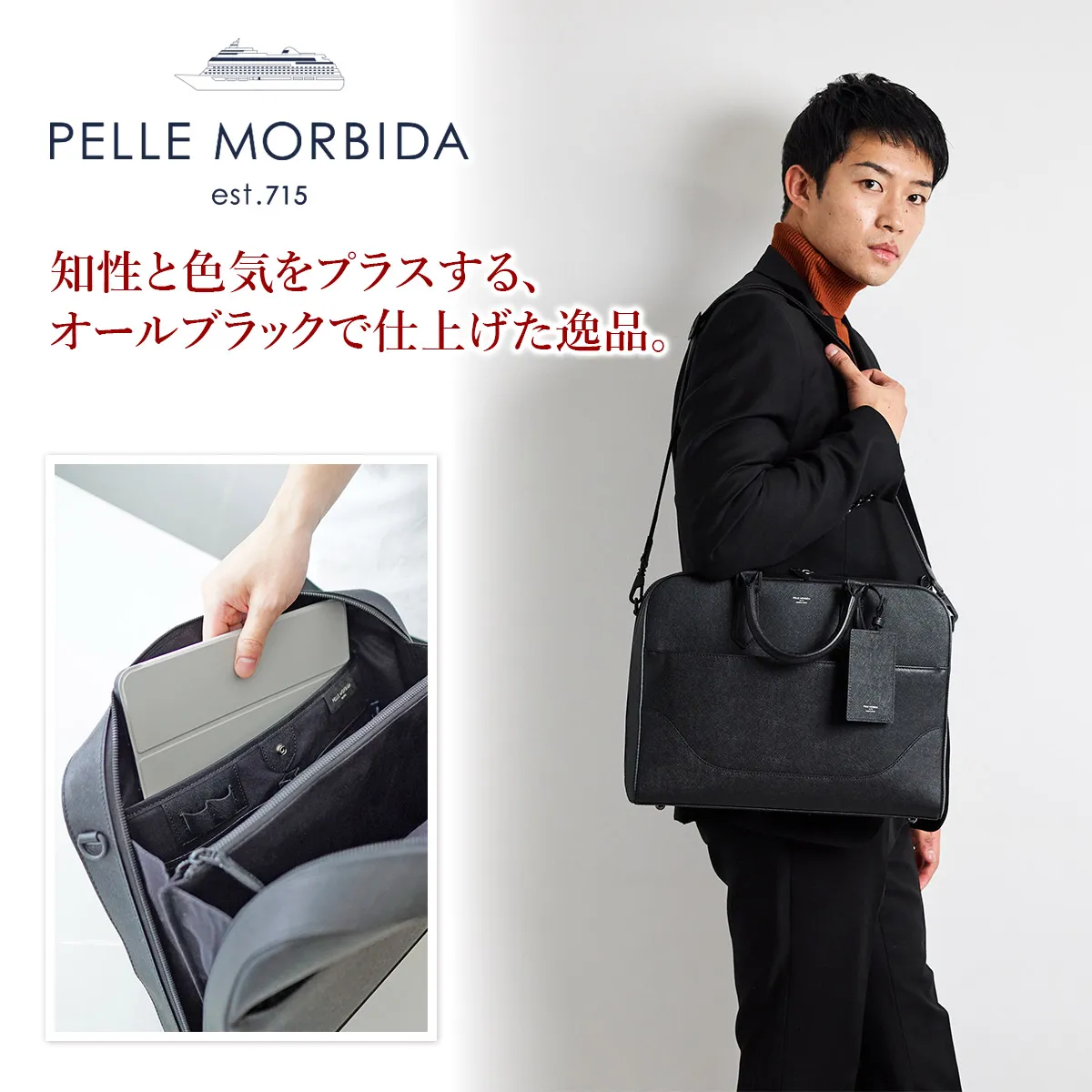 PELLE MORBIDA(ペッレ モルビダ) Capitano キャピターノ エンボスレザー B4ブリーフケース 1室タイプ(ショルダーベルト付属)PMO-CA013ABK 安全性や環境に配慮した国際団体 Leather Working Groupに加盟するタンナーを採用。