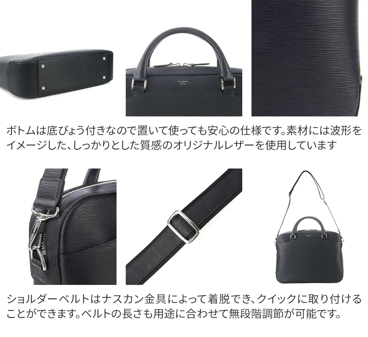 PELLE MORBIDA(ペッレ モルビダ) Capitano (キャピターノ) B4ブリーフケース 1室タイプ(ショルダーベルト付属) PMO-CA201 波のような大らかさ、普遍的で飽きのこないデザイン。