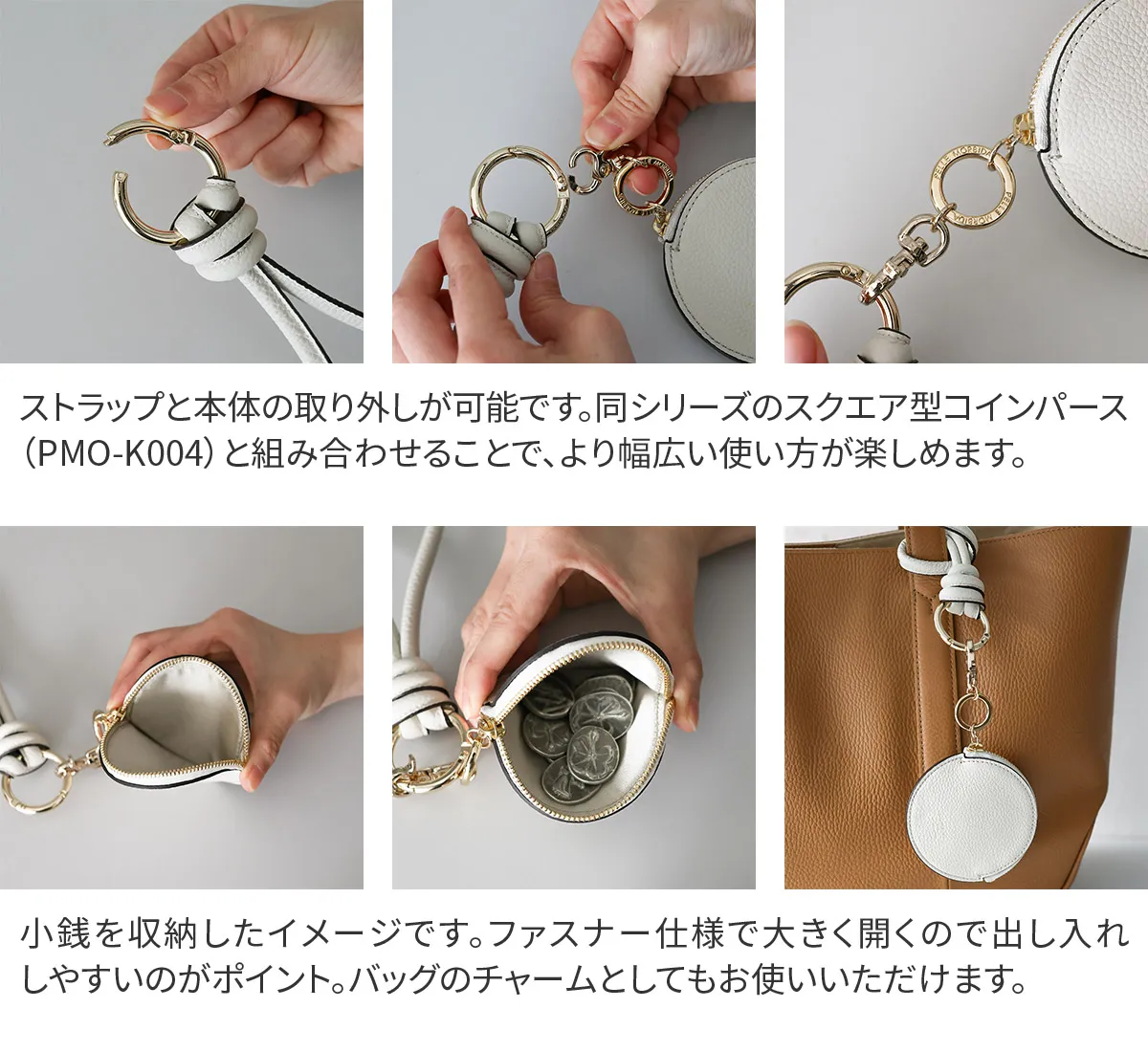 ≪金子麻貴×PELLE MORBIDA≫ レディースファッションブランド「regleam(リグリーム)」のディレクターでありインフルエンサーでもある金子麻貴さんとPELLE MORBIDAのコラボレーションアイテムが実現。 デザイン面だけでなく、働く女性、そしてママならではの視点で使い勝手にもこだわったWomensアイテムが完成しました。 ≪チャームとしても使えるコインケース≫ シボ感のあるレザーを用いつつ、特徴的なストラップがデザインのアクセントに。 単品では勿論、お好みのバッグにチャームとして、また同コラボアイテムのスクエア型のコインパースと合わせてそれぞれ組み合わせてもお使いいただけます。