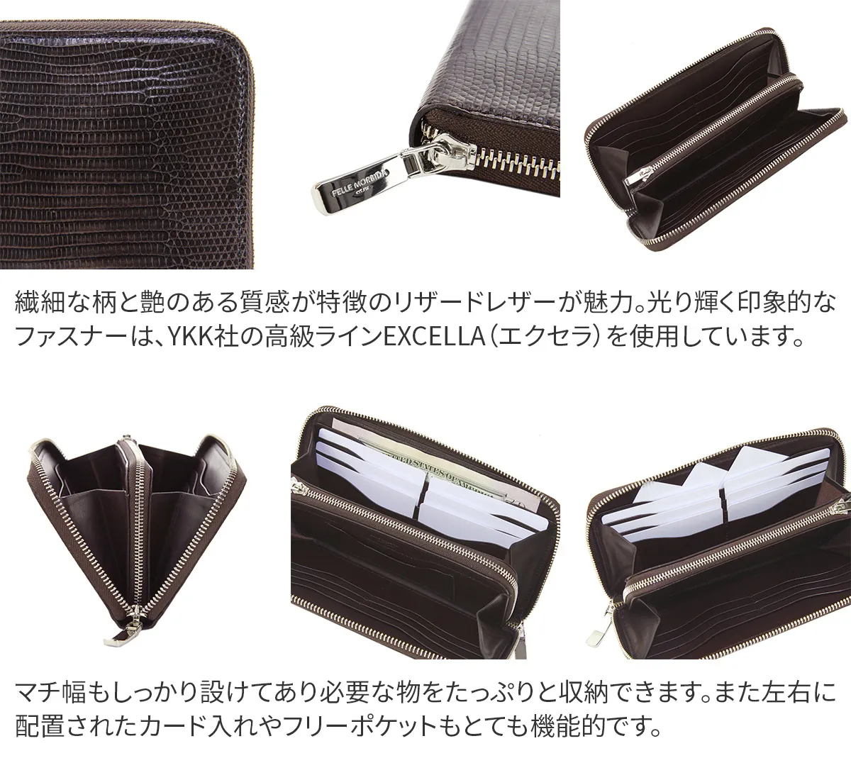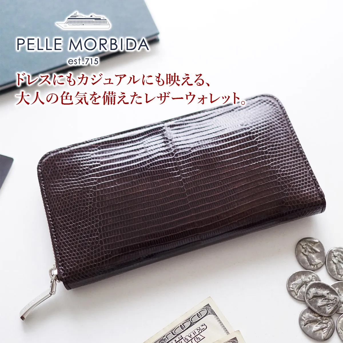 PELLE MORBIDA(ペッレ モルビダ) Barca バルカ リザードレザー ラウンドファスナー 小銭入れ付き 長財布 (中) PMO-LI002 高級レザーと洗練されたデザインで魅せる至高の逸品。