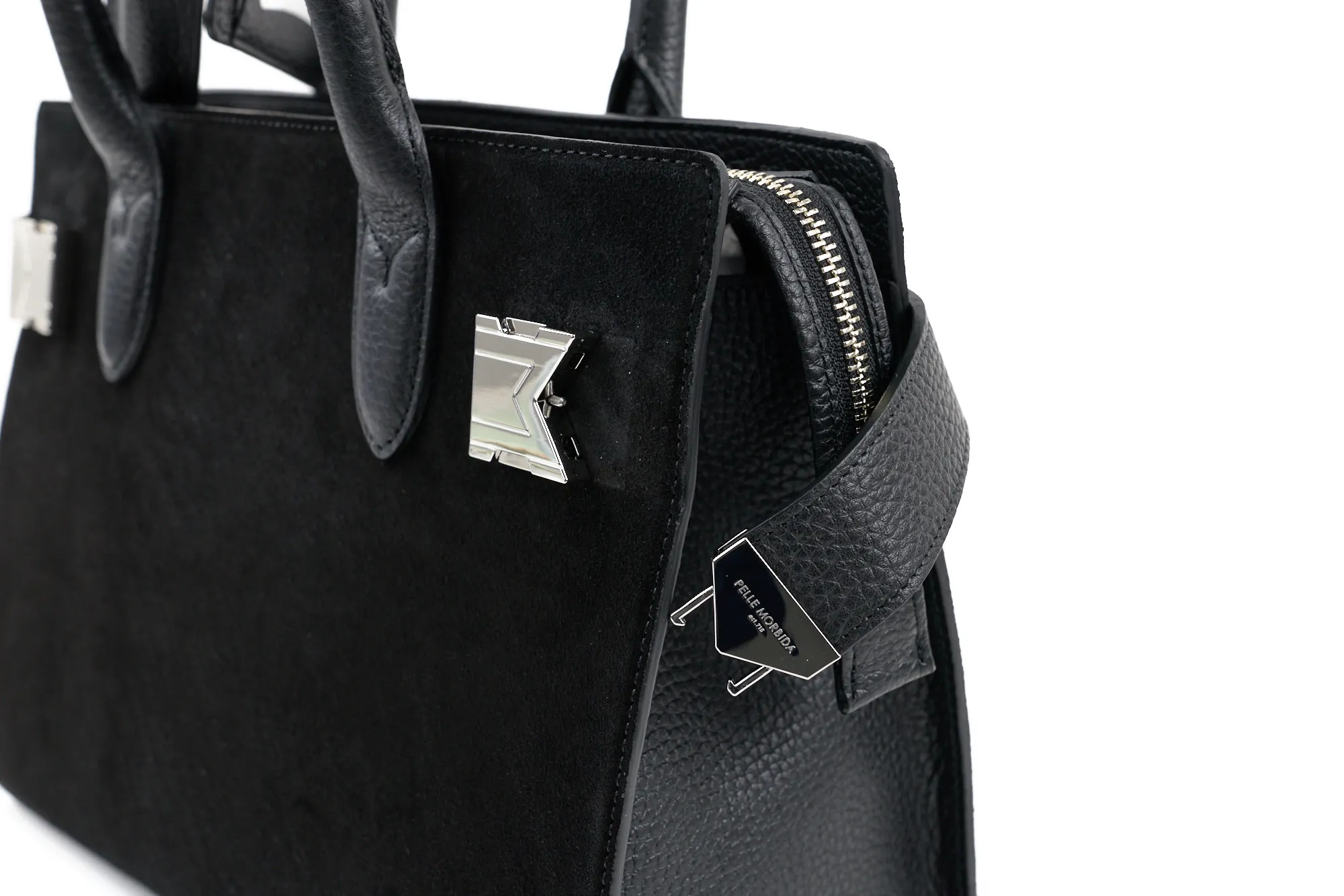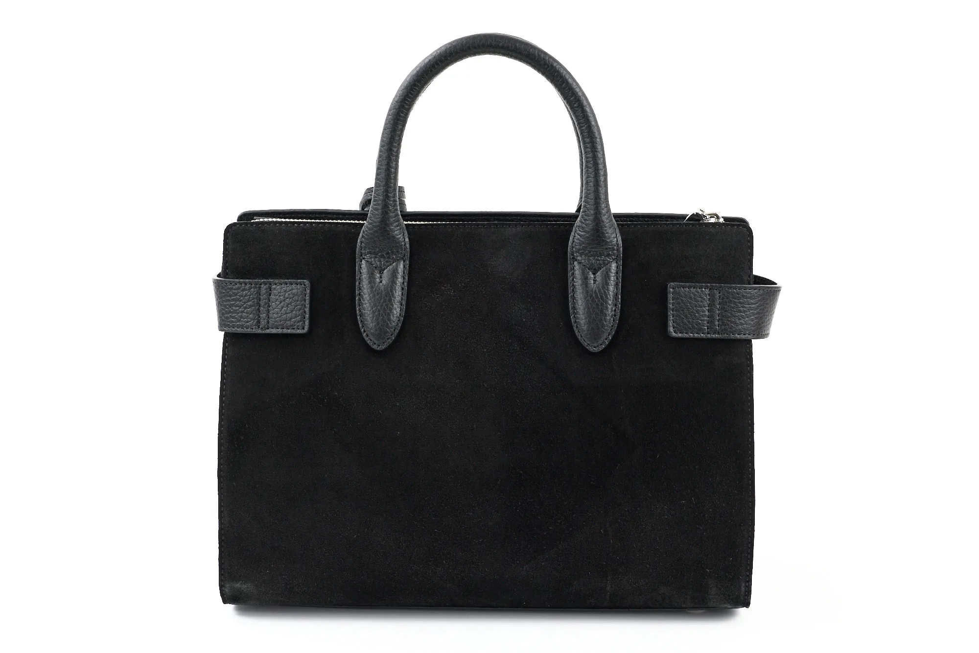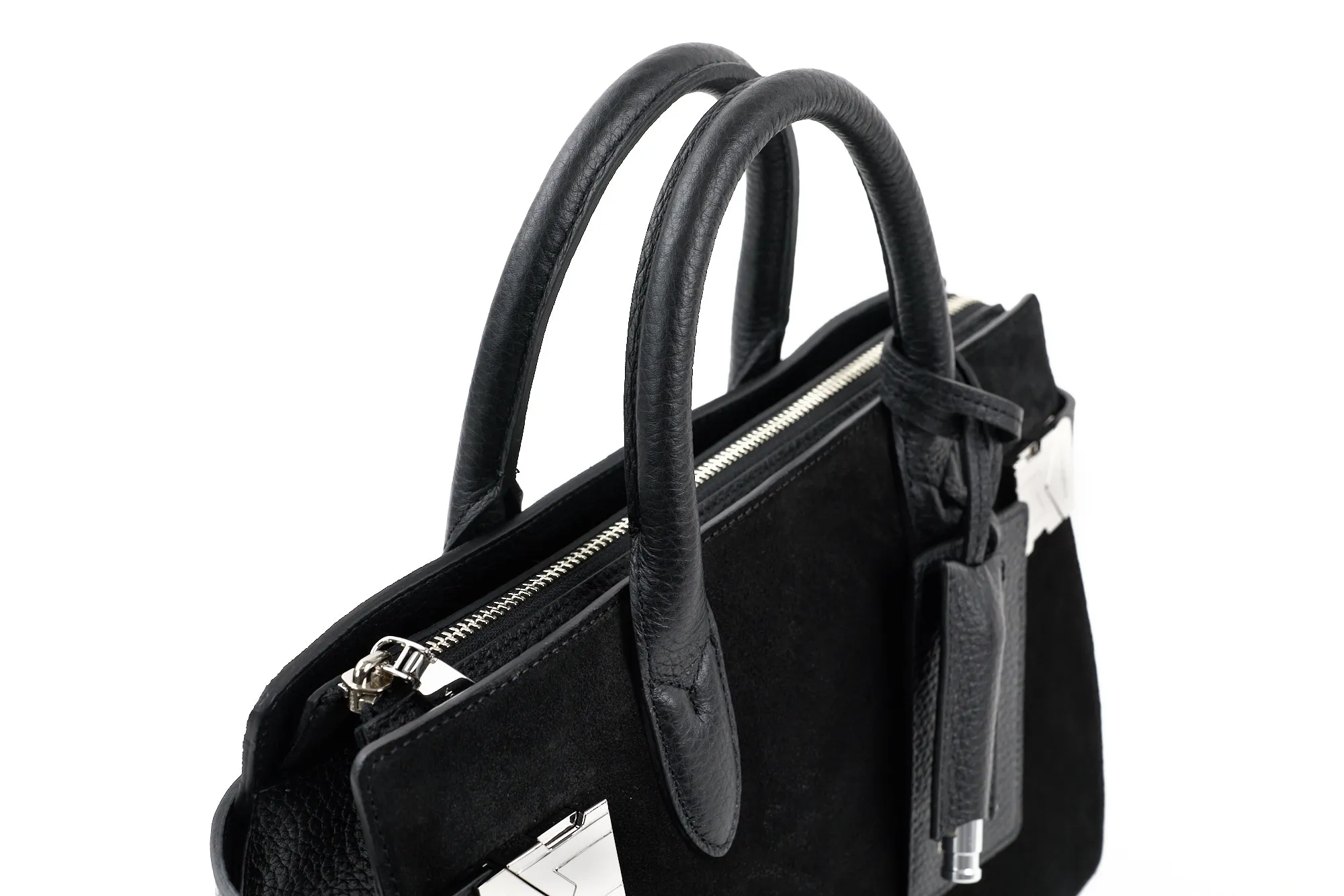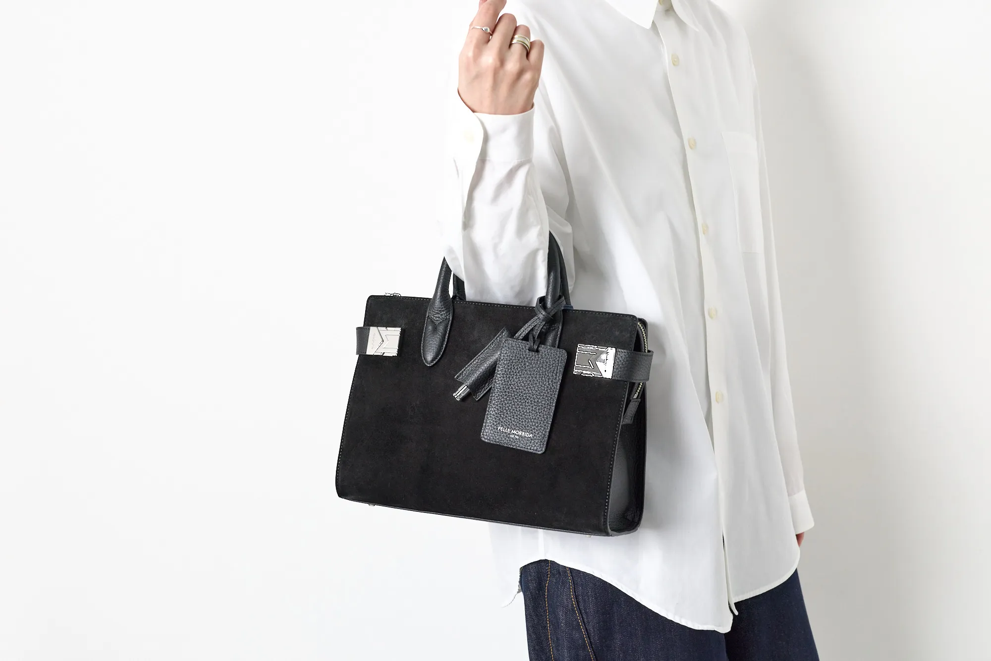 スエードの魅力を感じさせてくれるミニボストンバッグ。 採用されている〈DIAMOND〉スエードは、下地の段階から丹念に磨きを重ね、最終工程で染色を施すという独自製法によって生み出された素材。毛足は非常にきめ細かく、触れた瞬間に伝わるしっとりとした質感は、まさにビロードのような滑らかさです。発色にも奥行きがあり、光の当たり方で微妙に変化する表情が、シンプルなデザインに豊かなニュアンスを与えています。 ユニセックスでも使いやすいコンパクトサイズで、財布、携帯、ポーチなどの必需品が収納できます。 ジャケットスタイルに合わせれば品格を引き立て、カジュアルな装いには程よいラグジュアリー感をプラス。 素材で差をつけたい大人の方に、ぜひ手に取っていただきたい逸品です。
