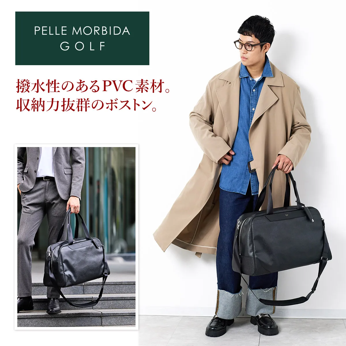 PELLE MORBIDA(ペッレ モルビダ) Golf ゴルフ ボストンバッグ PMO-PG006 ゴルフ時や旅行の際にも活躍。 高級感あるシャープな素材のボストン。