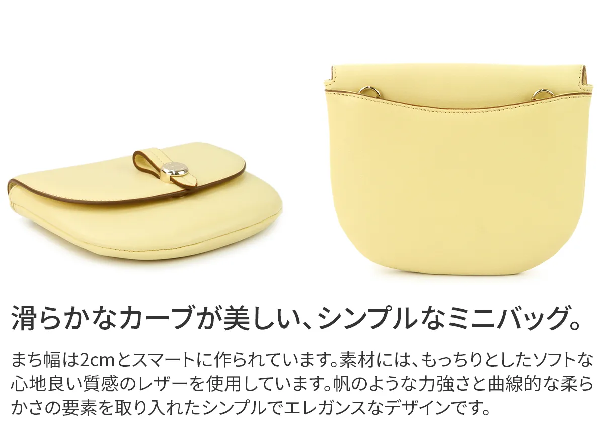 パーティーやディナーデートなどのシーンで、貴重品など少量の荷物だけをアクセサリー感覚で携帯するミニバッグです。身軽さと女性らしさを上品に魅せてくれるデザインが魅力的。クリーンな印象を与える優しく透明感のあるカラーがさり気なく華やかさをプラスします。 VELA(ヴェーラ)=イタリア語で「帆」を意味する、張り出しと膨らみのコントラストが美しいネオクラシックなデザインのライン。皮革生産地である姫路松原地区の牛革に、細やかなシボ型を押した上質なシュリンク風レザー。マットな質感をベースに、ほどよい光沢感を持たせ女性らしい色気を醸し出し、飽きのこない仕上がりに仕上げました。