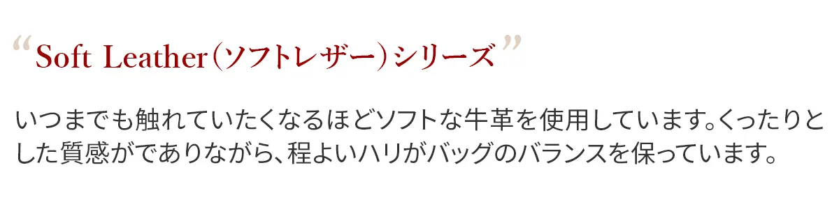 いつまでも触れていたくなるほどソフトな牛革仕様。くったりとした質感がでありながら、程よいハリがバッグのバランスを保っています。 シックなコーデにマッチするシンプルさを持ちつつも、さりげなく存在感を放ち、いつものコーデをブラッシュアップさせてくれる逸品です。巾着部分を閉めたままでも、ファスナー開閉ができるので、荷物もスムーズに取り出すことができます。ショルダーベルトの長さはボトム部分の結びで調整していただけます。とても軽量な作りですので、ワンマイルのお出かけなどにもお勧めです。