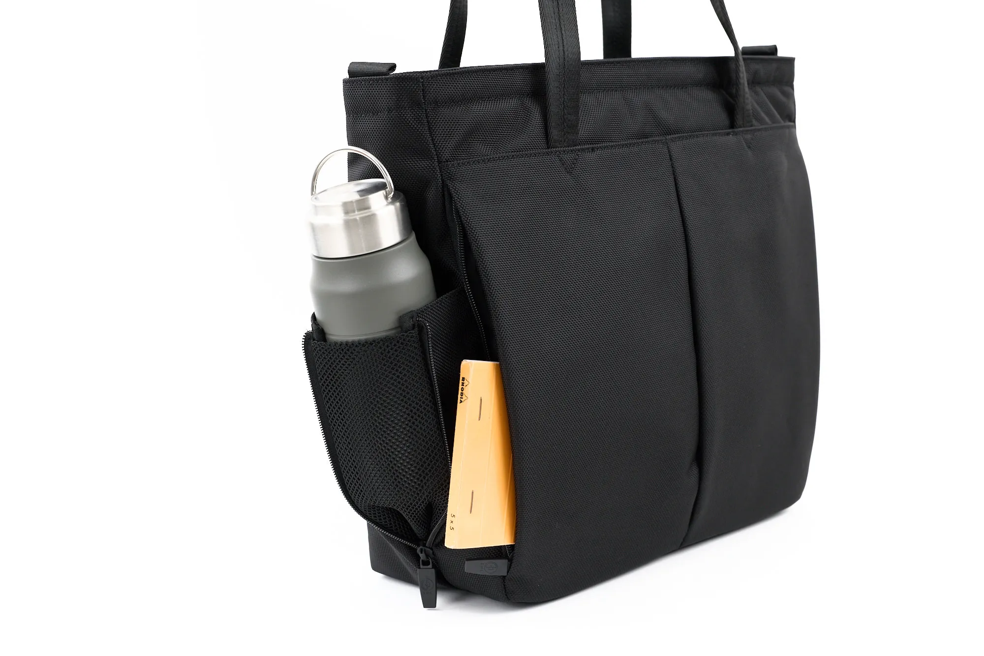シンプル・ハイスペックなビジネストートです。トートとショルダーの2WAYで使用できるので、カジュアルシーンでも活躍します。 サイドには拡張可能なポケットがあり、折り畳み傘から大きめのボトルなども収納できます。 底のICカード用ポケットはカードを収納いただくことで、交通機関のご利用や電子マネーでの支払いも楽に行っていただけます。
