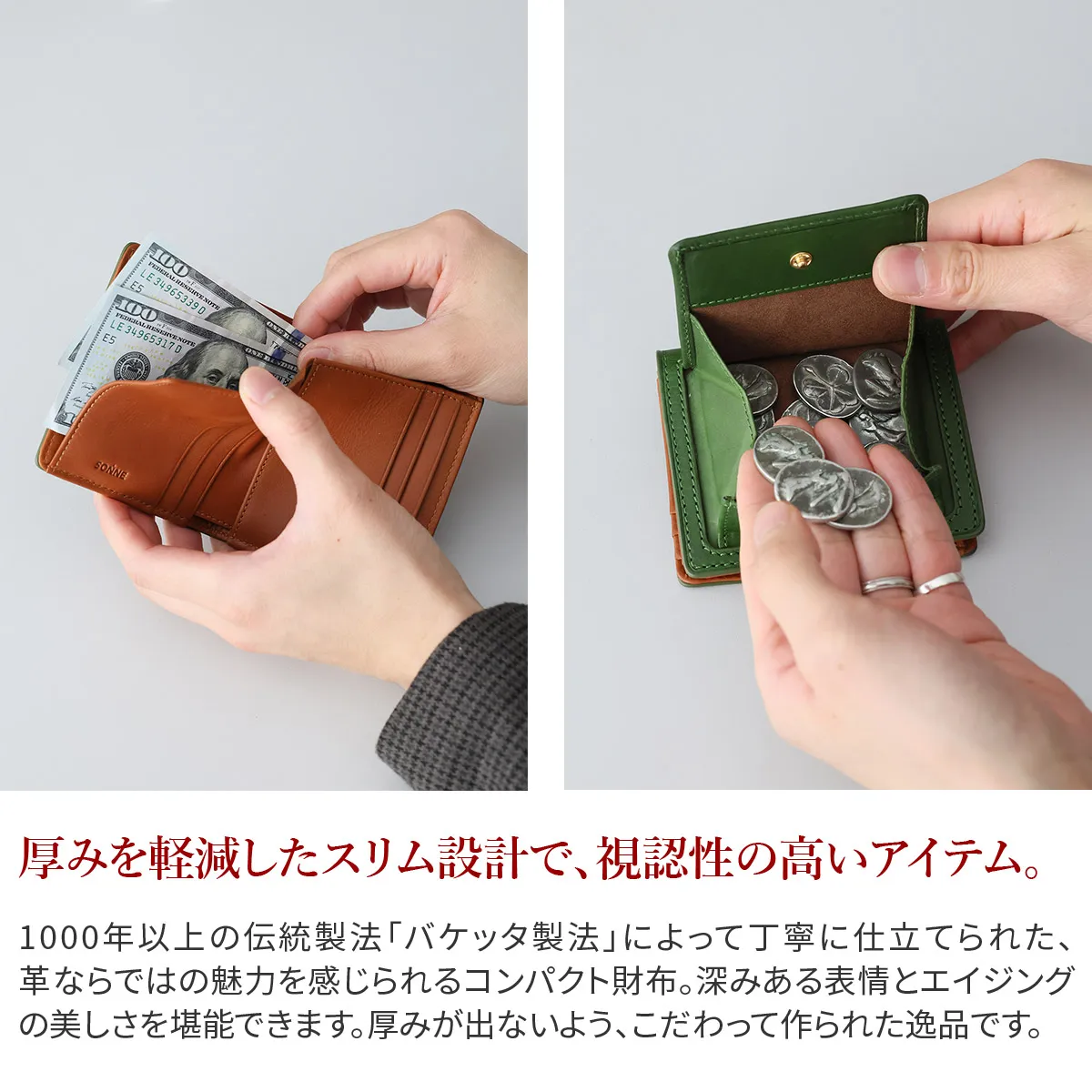 上質な艶と透明感をもつイタリア・フィレンツェ産の「ミネルバリスシオ」。 その深みある表情とエイジングの美しさは、1000年以上の伝統製法「バケッタ製法」によって丁寧に仕立てられた革ならではの魅力です。 表革には、そのミネルバリスシオを贅沢に使用。 つるりと滑らかな表面は上品で温かみがあり、手にするほどに艶を増し、持ち主だけの風合いへと育っていきます。 内装には、インド産フルグレインレザー「ナッパグロッシー」を採用。 しっとりと柔らかく、しなやかで弾力に富んだその手触りは、使い心地においても極上の体験をもたらします。 滑らかさと本物の質感を意味する「リスヴェロ」は、使うたびに輝きを深めていく、大人のためのレザーウォレットシリーズです。 一万円札がぴったりと入るコンパクトさが特徴のコンパクトウォレットで、スリットが入っていてお札の出し入れもとてもスムーズです。 また、内装のカードがあたって厚みが出ないように工夫を凝らしています。 小銭入れが外につけることで厚みを軽減していて、BOX型小銭入れなので中を見渡しやすく、使いやすさも兼ね備えた仕様です。