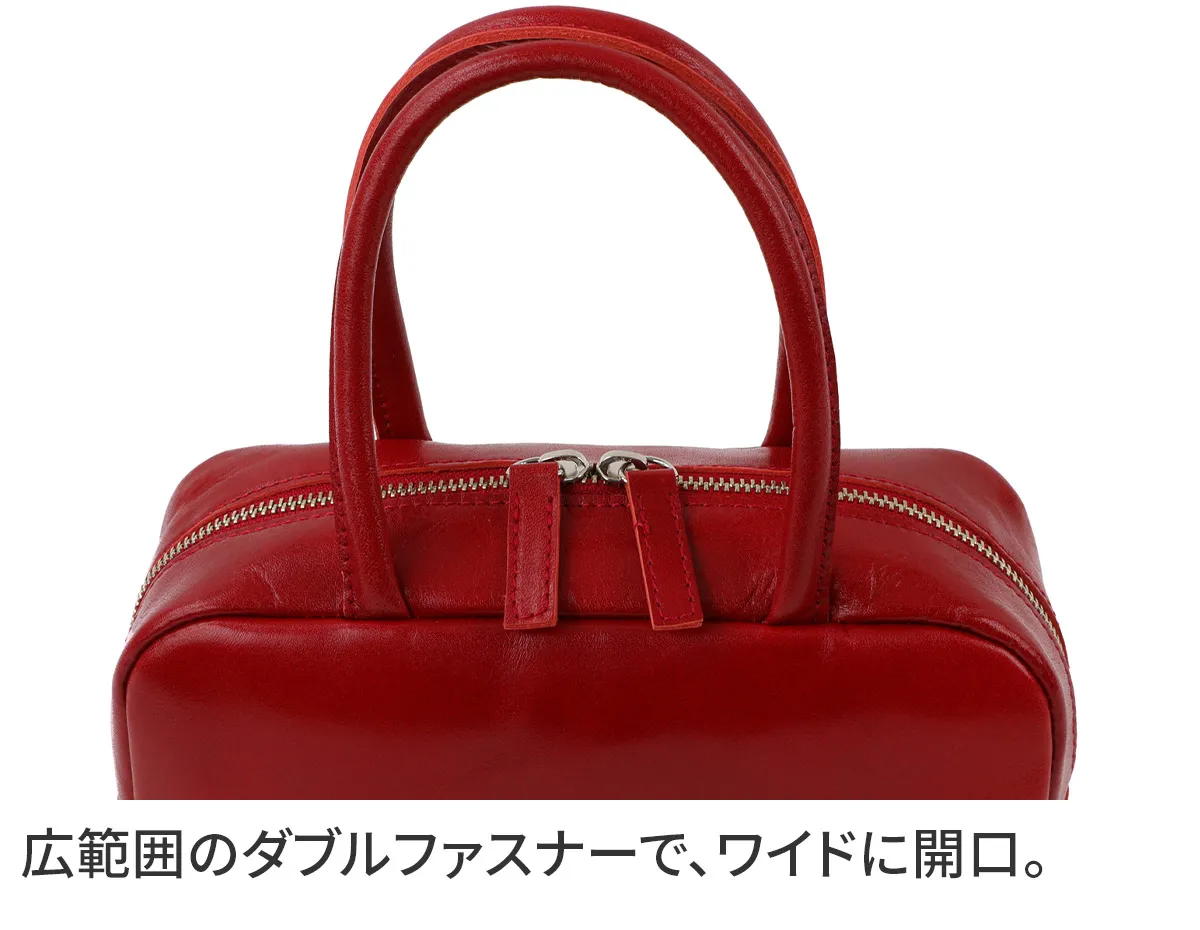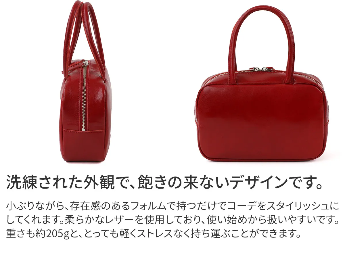 氷をイメージして作られた、コロコロと転がるようなデザインのICYシリーズ。 縫い目の見えない柔らかな曲線を描いた、トレンド感のあるフォルムが印象的なボストンバッグ。メイン開口部は、便利なダブルファスナー式。 柔らかなレザーに、サイドまで施されたファスナーで開口部がワイドに開きます。マチ幅をしっかり備えたた収納力抜群のアイテムです。