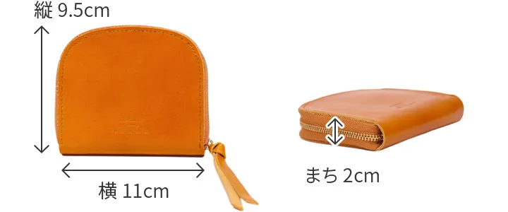 独自の製法で手染めのアンティーク加工を施し、強さとしなやかさを兼ね備えています。 滑らかなレザーが心地良く手にフィットする、半月フォルムが特徴的の二つ折りウォレット。スムーズに滑るラウンドファスナーを開けると、内部はシンプルな作りです。カード入れが4ヶ所、ポケットとお札入れが各2ヶ所ずつ、小銭入れが1ヶ所備えられており、必要な物だけをすっきりと収納していただけます。無駄な装飾がない分、エイジングを楽しめる逸品です。
