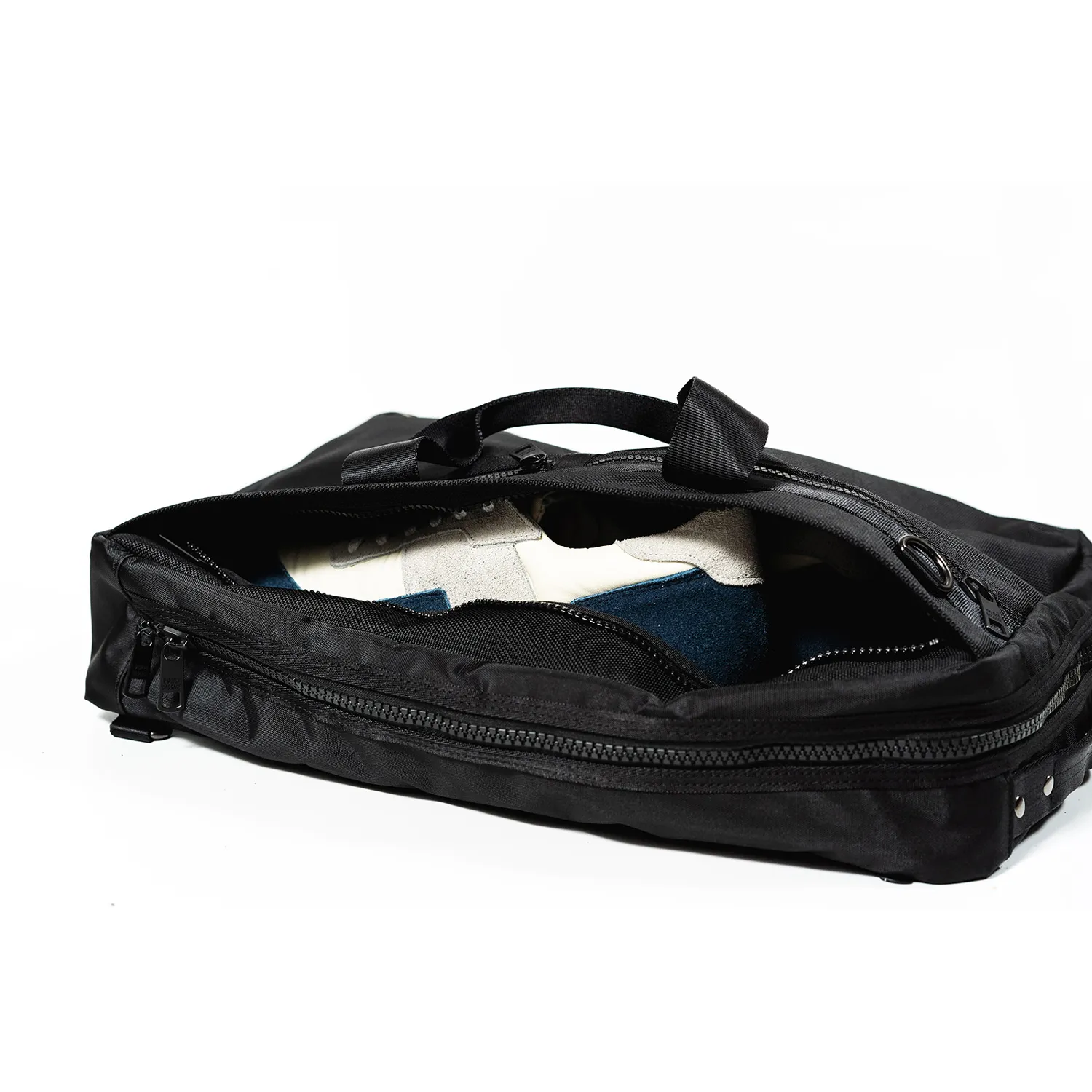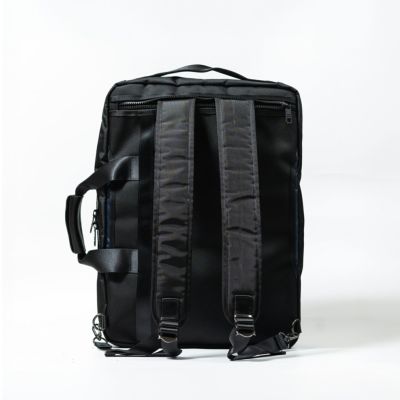 リュック・ブリーフの2WAY仕様で、ビジネスから日常まで幅広く対応する高機能バッグ。 サイズ感とディテールを見直し、より洗練されたデザインに仕上げました。 メインコンパートメントはL字型に大きく開く構造で、内部にはPCポケットとメッシュポケットを装備。 前面には財布やスマートフォンを収納できる2つのファスナーポケット、さらにシューズも収まる大容量サブポケットを配置しています。 背面にはトロリーバッグのハンドルを通せるスリットを備え、出張にも対応。 滑らかな開閉が可能なビスロンファスナーを採用し、耐久性と操作性を両立。 従来のA4ブリーフよりやや大きめのサイズ感で、現代のワークスタイルにフィットするユーティリティバッグです。 ※リュック用ショルダーベルトは収納式です。