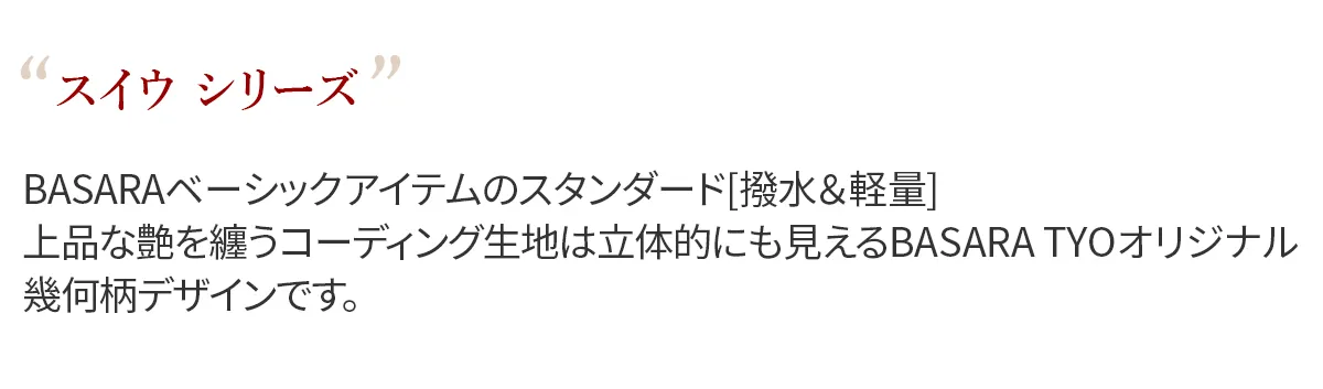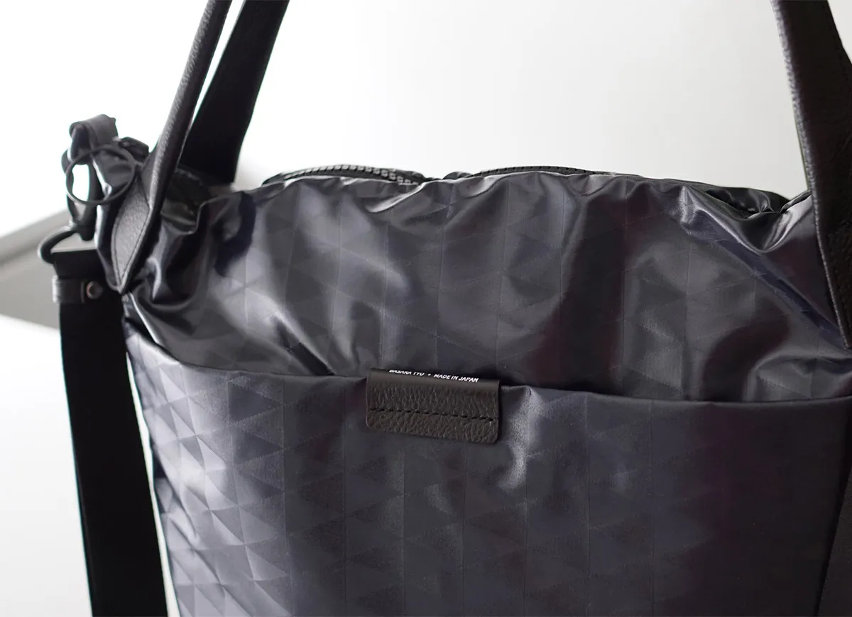 BASARAベーシックアイテムのスタンダード[撥水&軽量] 上品な艶を纏うコーディング生地は立体的にも見えるBASARA TYOオリジナル幾何柄デザインです。 幾何学模様が印象的な大容量2WAYショルダーバッグ。非常に軽く、マチがしっかりあるので、アウトドアでも活躍するアイテムです。 ファスナーの引き手は、リングタイプを採用しているため、荷物の出し入れがしやすく使い心地の良い仕様となっています。 ところどころにレザーがあしらわれているため、より上品さが感じられます。 表面と裏地でバイカラーになっているのも魅力の逸品です。