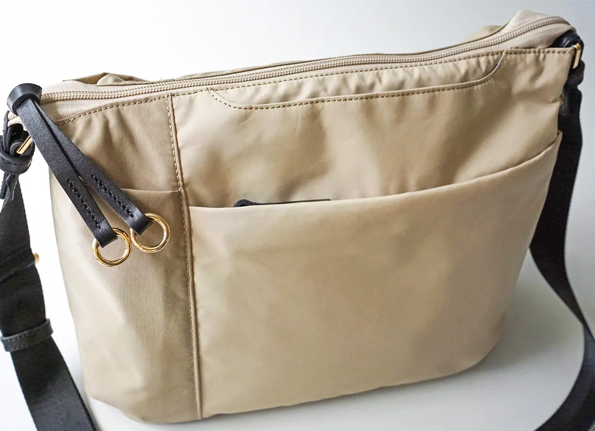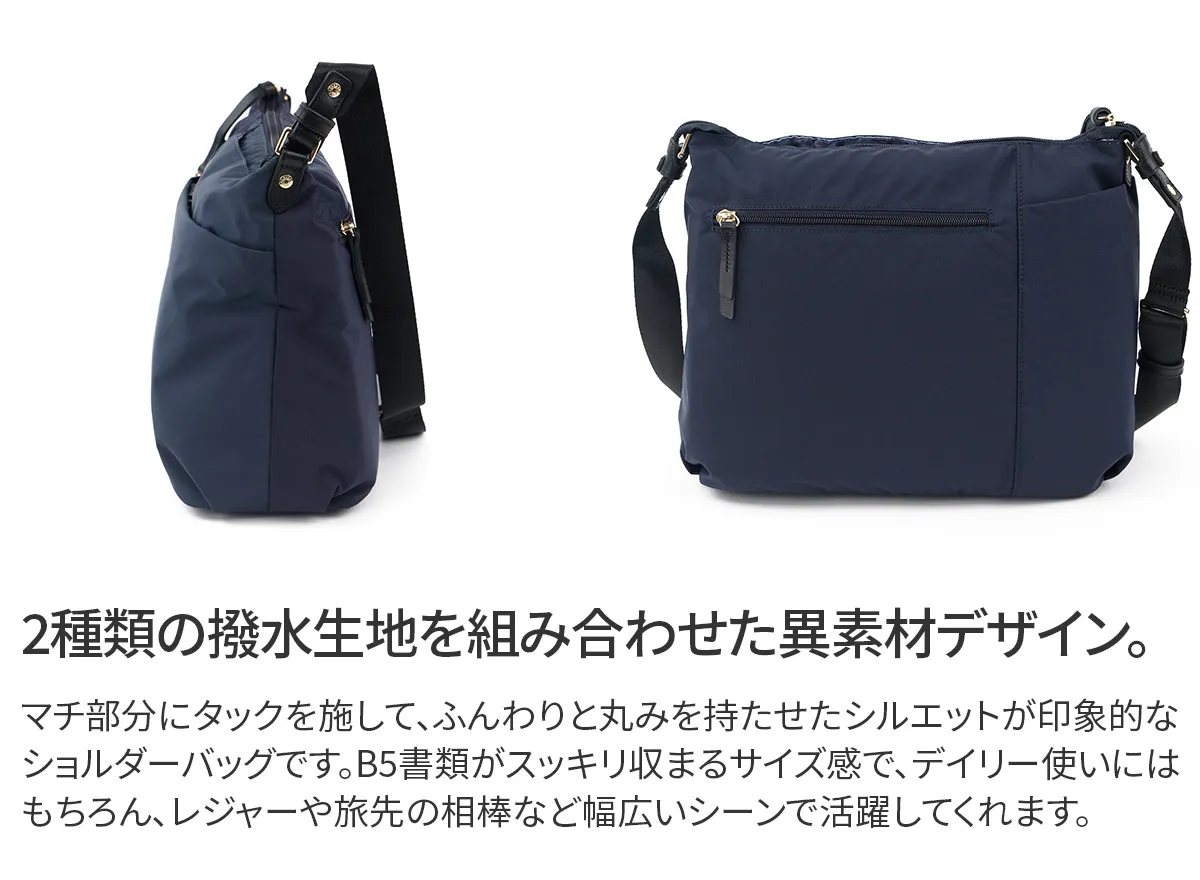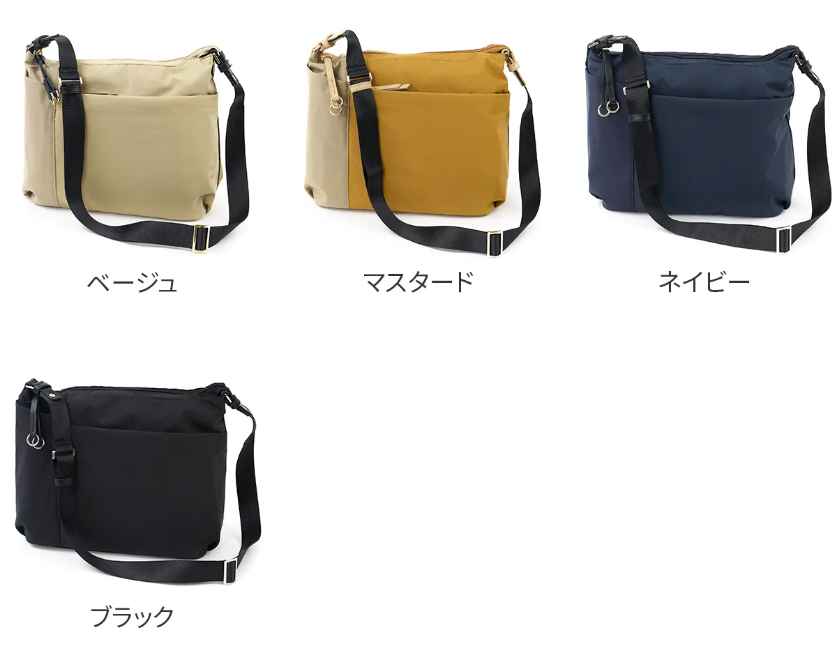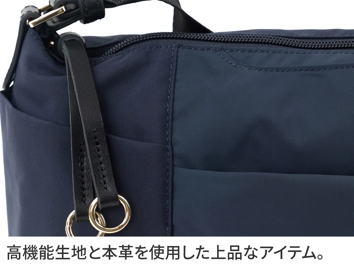 国産の撥水生地と優しいタッチ感の牛革を使用しています。 水や汚れを弾き、軽量でお手入れもかんたん。空模様を気にせず、抜群の使い勝手で毎日活躍してくれるバッグです。 《素材の特性》 天然皮革を使用しており、革そのものの風合いを生かすため、過度な色止め加工などは行っておりません。そのため、水に濡れたり、強い摩擦などにより、色落ちする恐れがございます。 高機能なナイロン素材で、軽くて快適に使えるショルダーバッグ。 大小さまざまなポケットを設けており、小物をサッと取り出せます。 メイン収納部は長財布もすっぽり収まる実用的なサイズ感。 撥水機能を備えている為、毎日のお出かけや旅行先のお供として、 急な雨でも安心して気兼ねなくご使用いただけます。