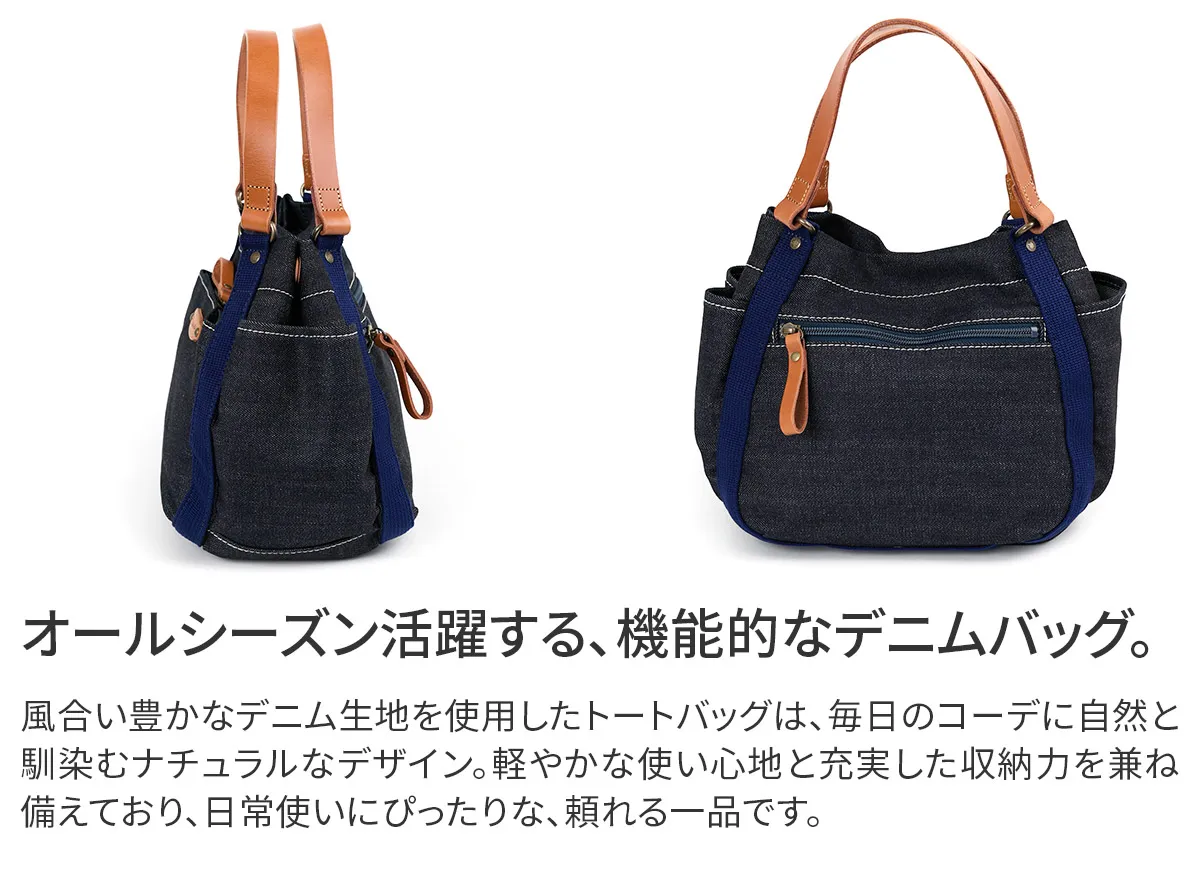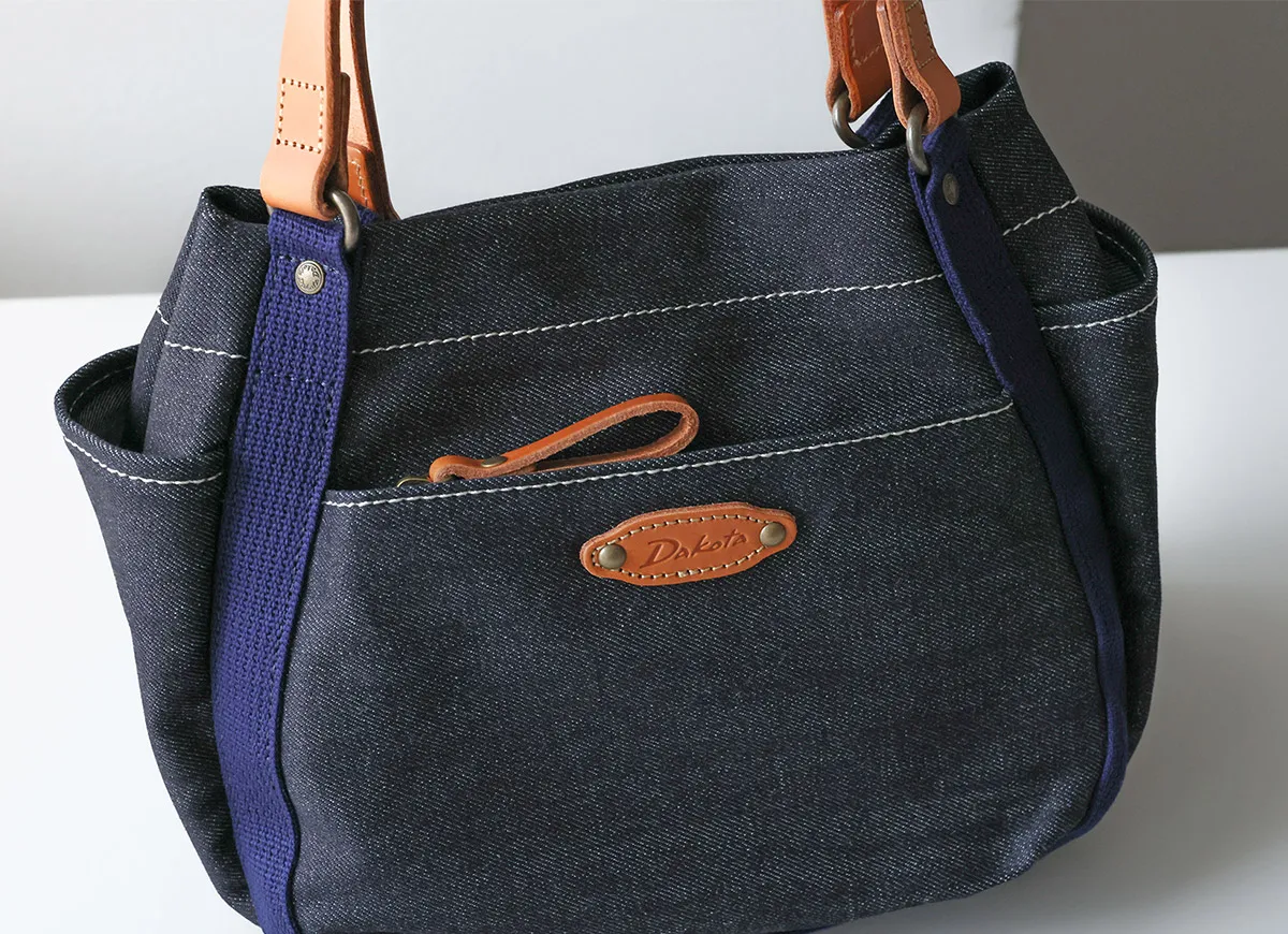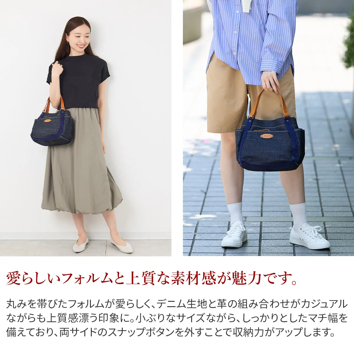 ハリ感のある素材を使用したシリーズ。デザインのワンポイントに厚ヌメを使用する事でカジュアル感を表現しました。 コットン素材をメインに仕立てた、温もりのあるデザインが魅力の手さげバッグ。コンパクトながら、両サイドのスナップボタンにより容量に応じてフォルムを変えられる機能的な設計。外側・内側ともに豊富なポケットを備え、使い勝手も抜群です。汎用性が高く、気づけばいつも手に取ってしまうような、日常に寄り添うアイテムです。