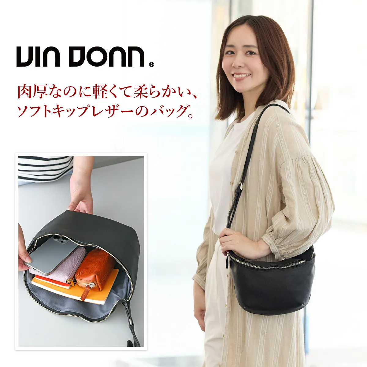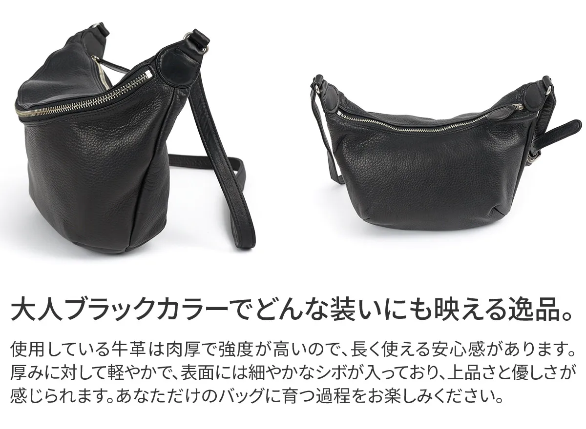キメ細やかでしっとりと手に吸い付くようなソフトキップを贅沢に使った、20年以上続くVIADOAN定番のシリーズです。 2室の収納スペースを設けており、用途に合わせて整理収納できるショルダーバッグです。 前面のメイン収納部にはマチをしっかり設けた作りとなっており、長財布が収納できる便利なサイズ感です。 ショルダーや斜め掛けで持つことができ、ソフトな素材が身体に寄り添い心地良く持つことができるユニセックスデザインのアイテムです。