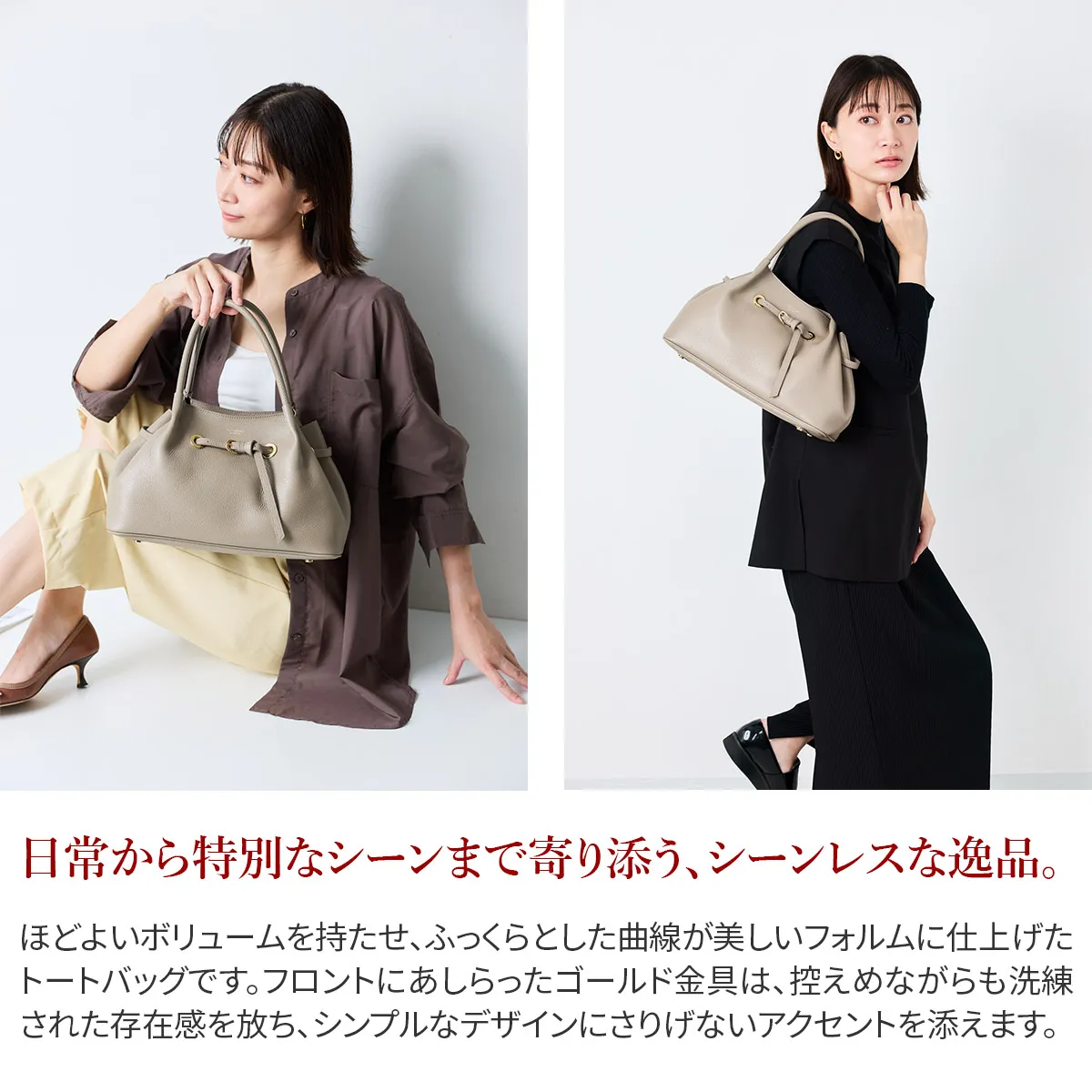 上質なイタリアンレザーを使用した、品のあるベルトデザインが魅力のトートバッグ。 3段階のベルト穴により開口部の広がりを調整でき、視認性にも優れています。 天マチと底マチをしっかり備えているため、かさばる荷物もすっきり収納可能。 傷が付きにくい革素材で、日常使いはもちろん、 ビジネスシーンでも活躍する洗練されたアイテムです。