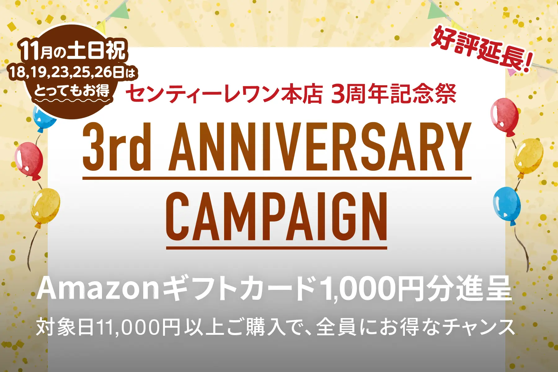 Sentire-One本店で、2023年11月 対象の土日祝に、1回のご注文で 税込11,000円以上ご購入のお客様全員(キャンセル注文を除く) |