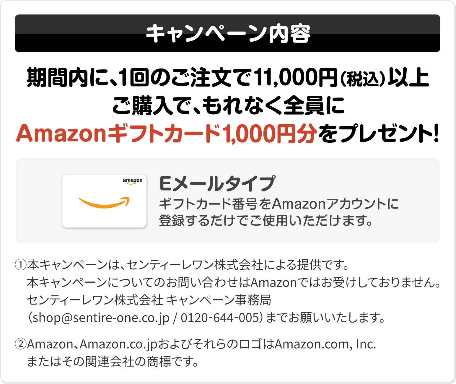 ・Amazonギフトカード1,000円分を、対象者の方もれなく全員にプレゼント!
