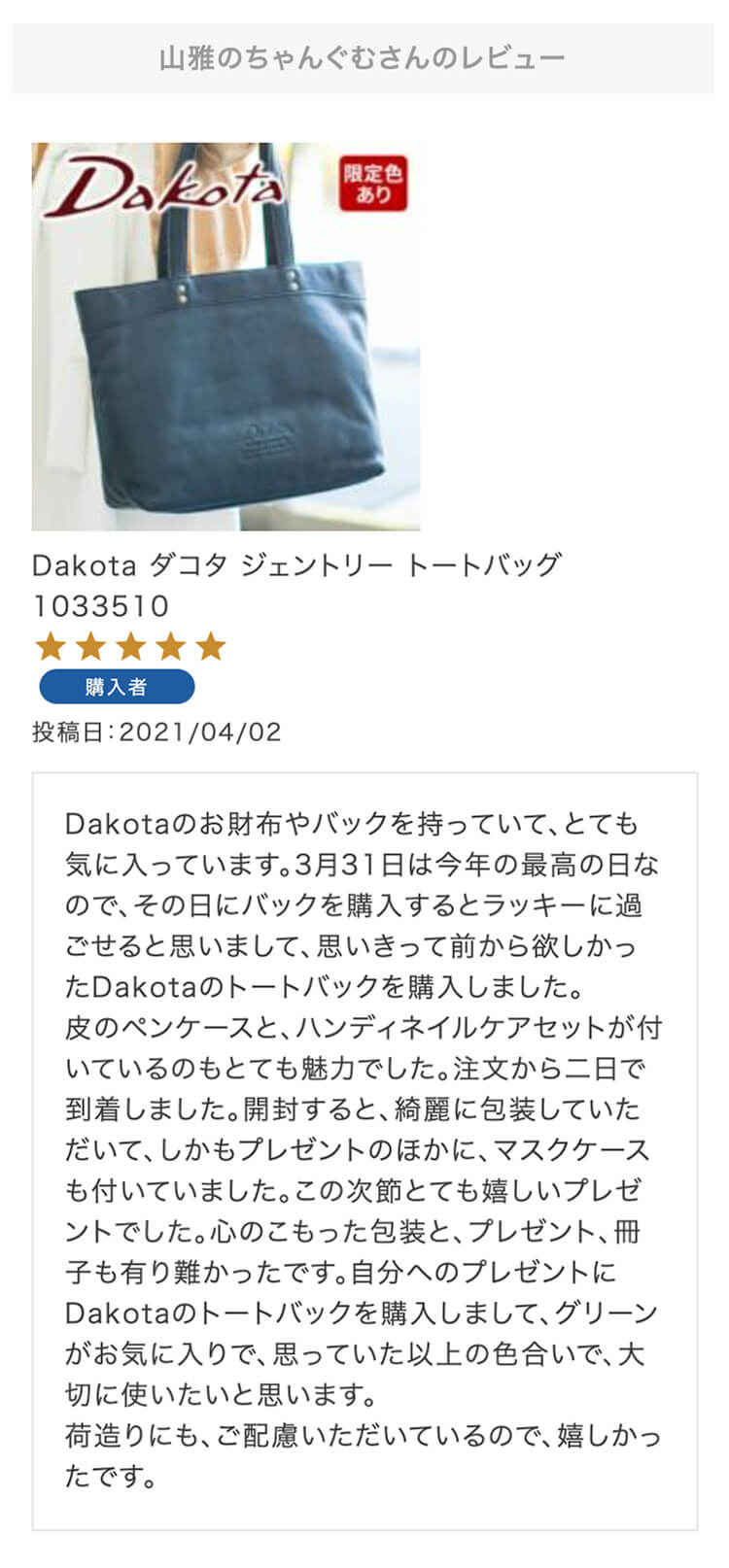 第2回 レビュー大感謝キャンペーン 特賞お名前:りんご様投稿日:2021/03/17