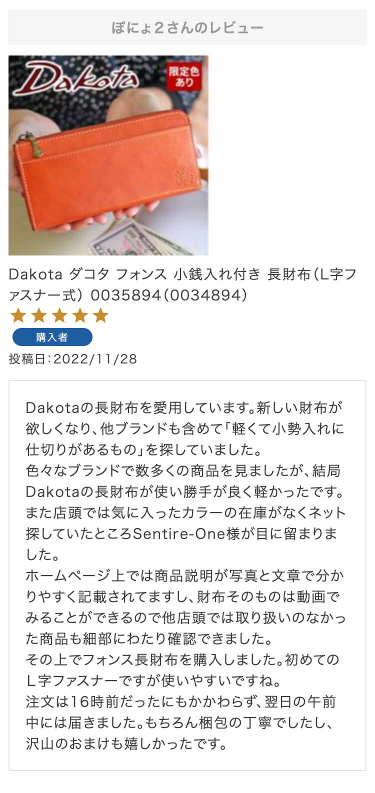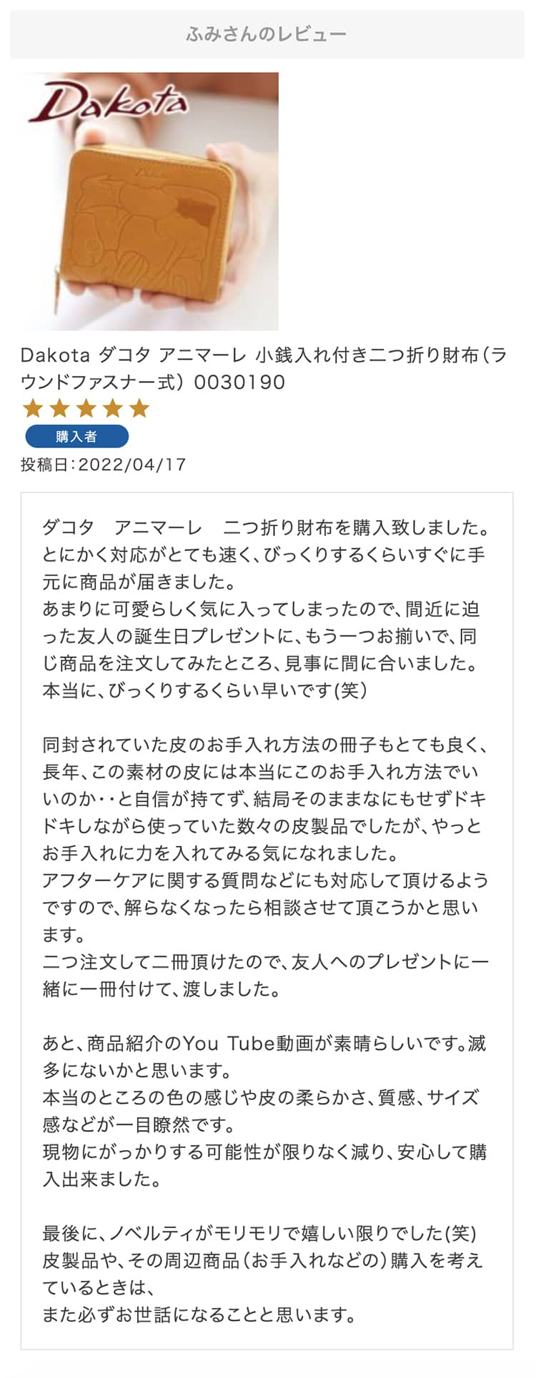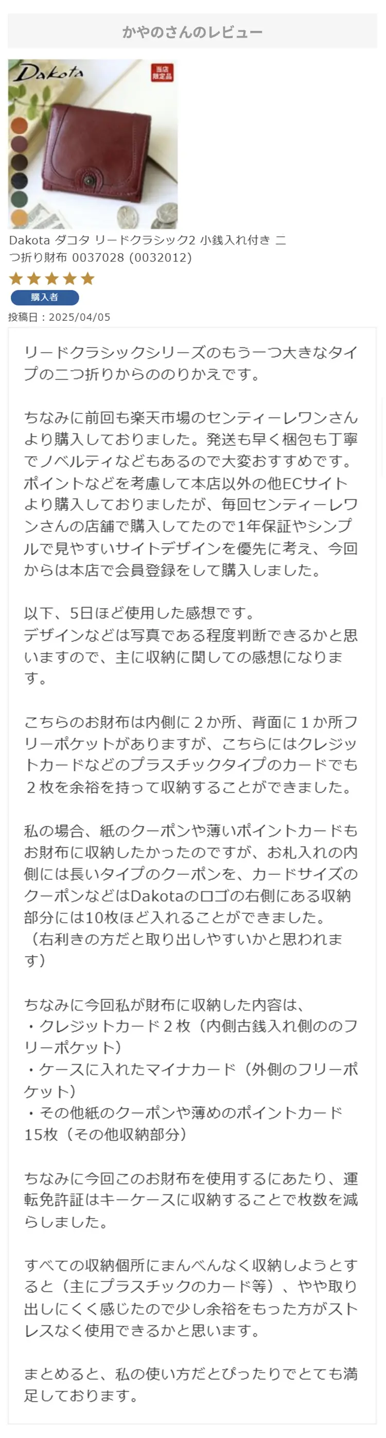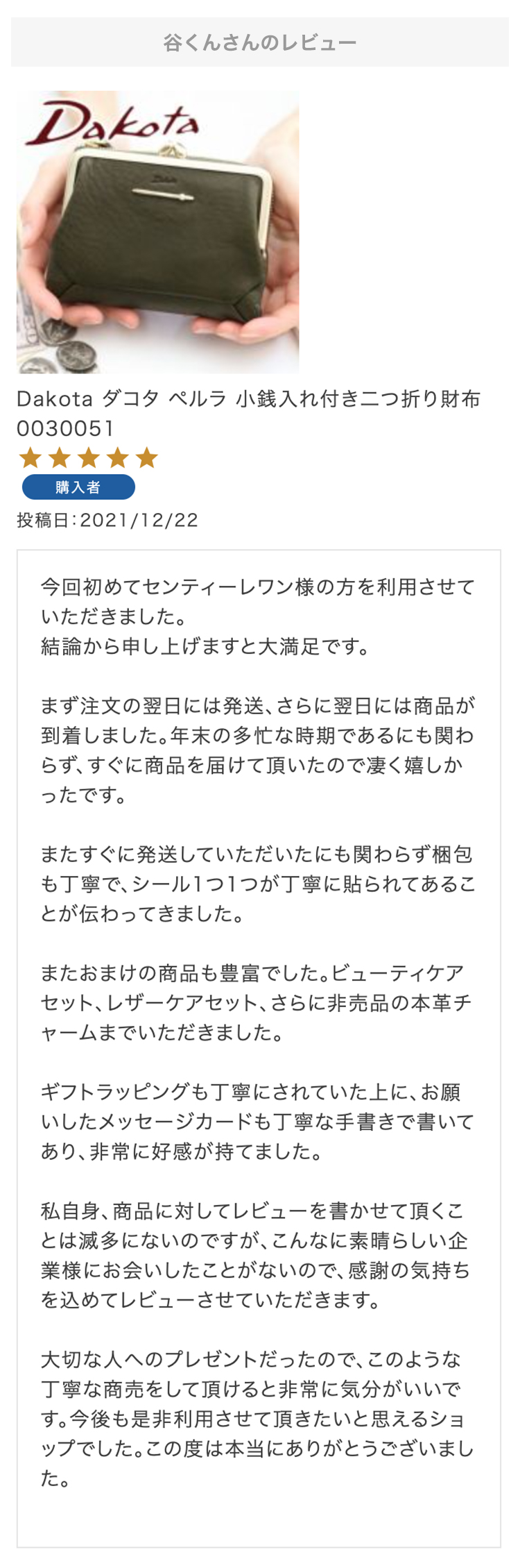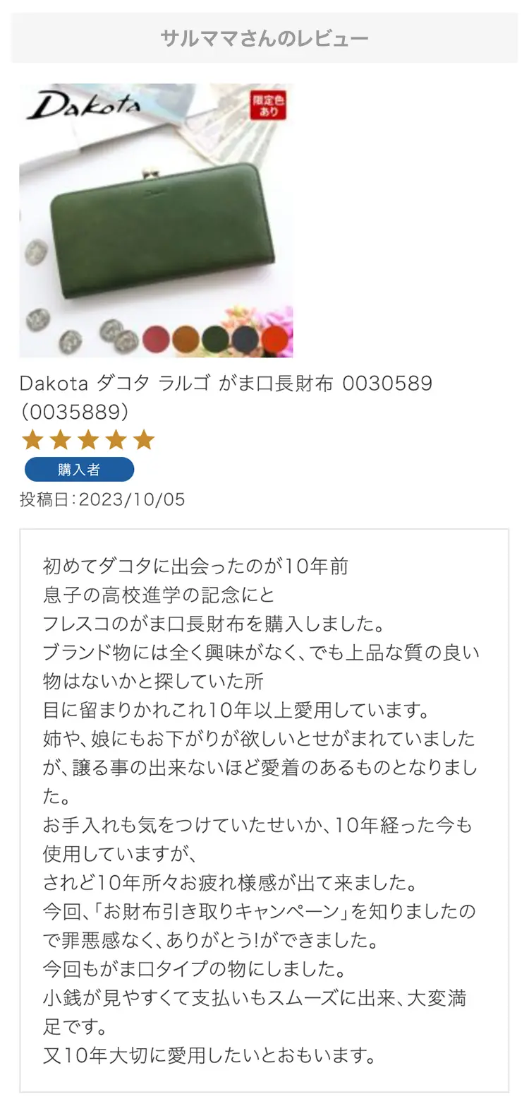お母さんの誕生日プレゼントにこちらの財布を選びました!母はダコタさんのお財布を学生の時から好きで、育児でお世話になったので奮発して買いました!ラッピングもとても綺麗で特典まであり、大満足です。母にあげるのがとても楽しみです。