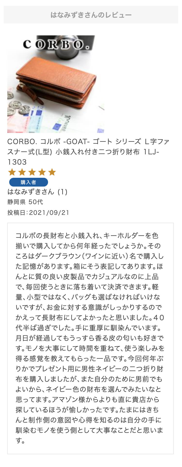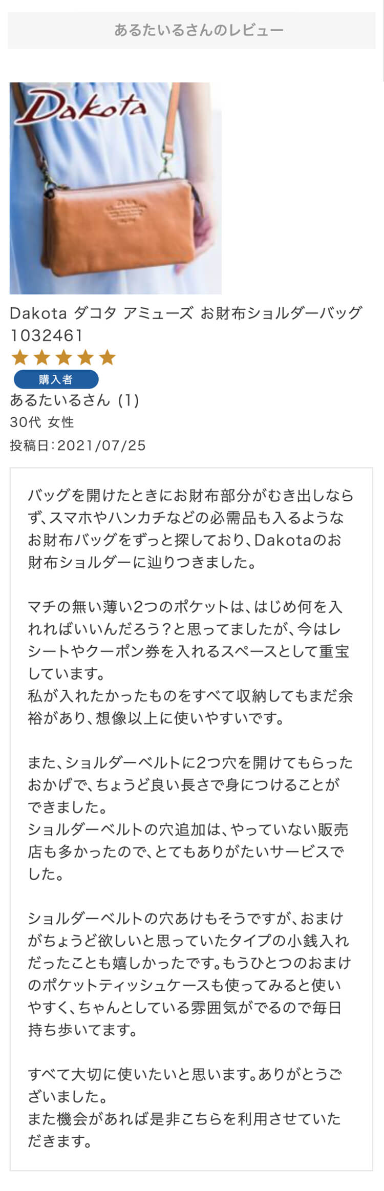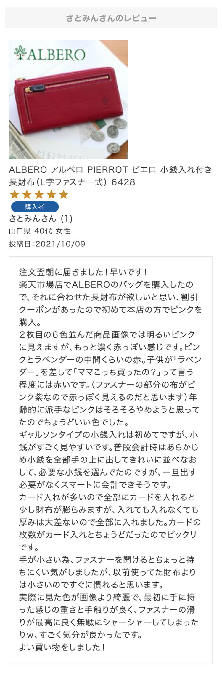 第9回 レビュー大感謝キャンペーン 特賞お名前:さとみん様投稿日:2021/10/09