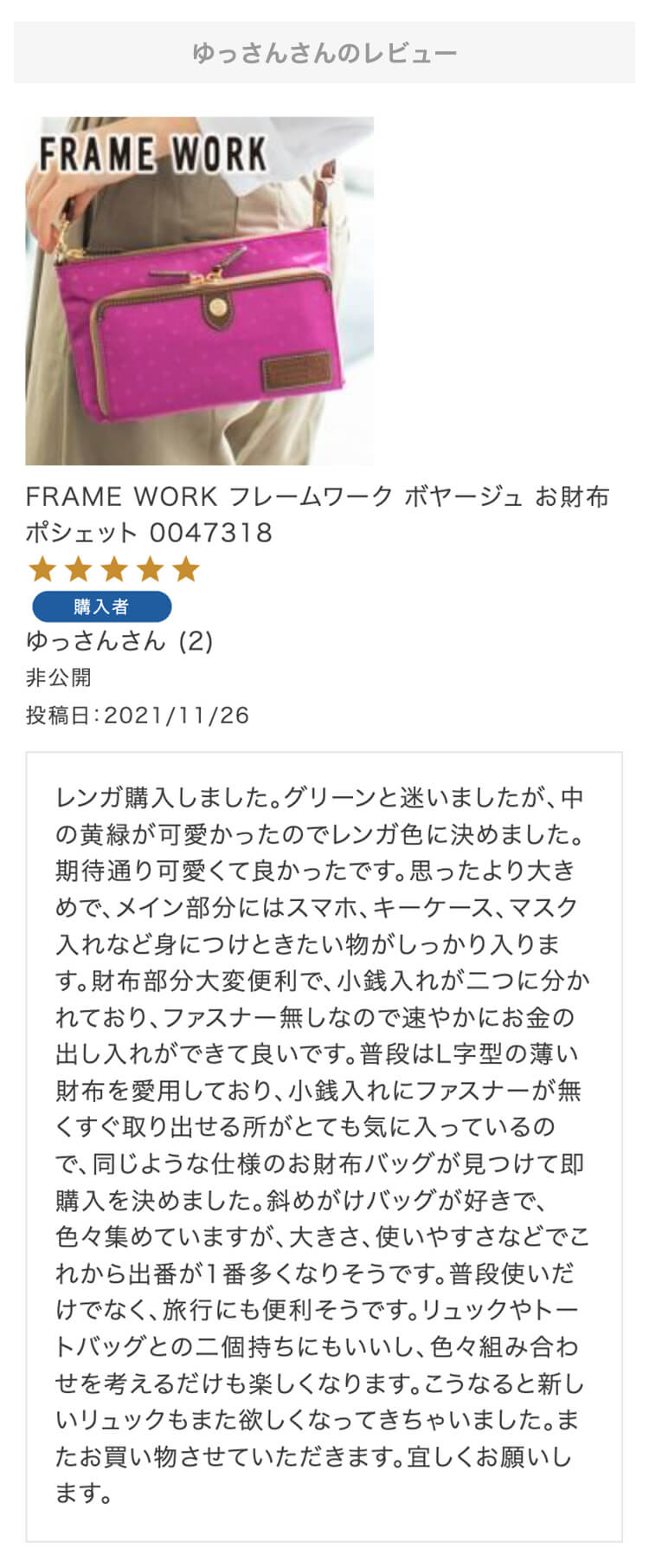 第10回 レビュー大感謝キャンペーン 特賞お名前:ゆっさん様投稿日:2021/11/26